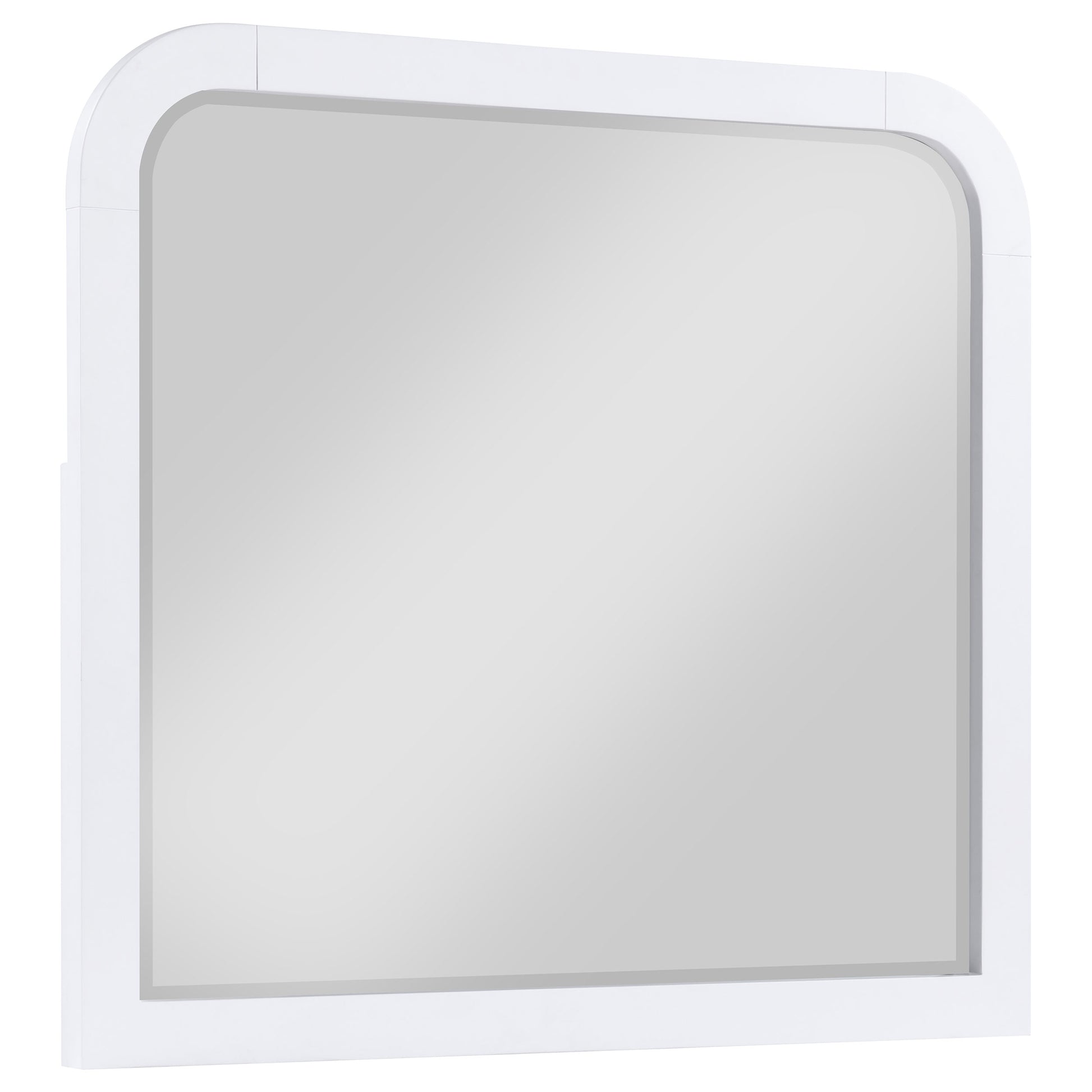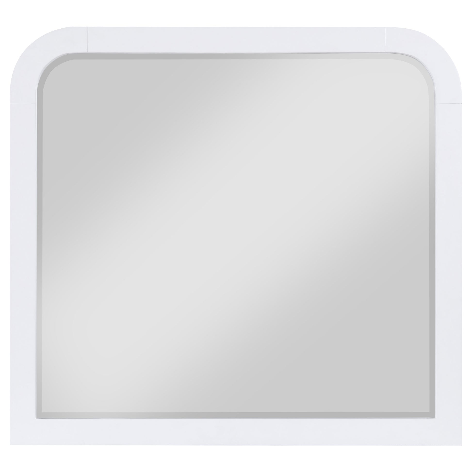 Complete your bedroom with a modern framed dresser mirror. Ideal for a contemporary space, it features a crisp silhouette with square lower corners and rounded upper corners. Its pearl white finish is light and airy, ideal for a compact space. The mirror glass beveled to create dimensionality in your bedroom and is ideal for getting yourself ready to go in the morning. This mirror is a great way to finish your bedroom ensemble.