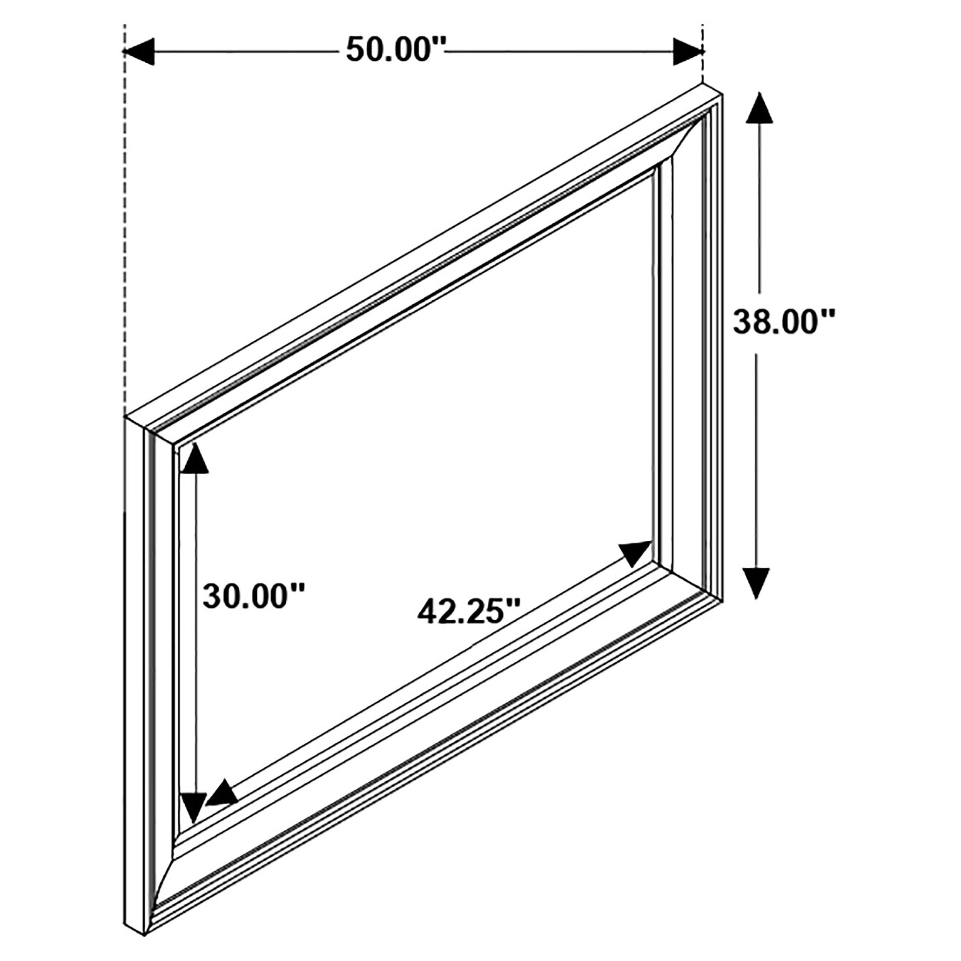 Add beauty and balance to your bedroom decor. This rectangular mirror is the perfect finishing touch to your personal space. Subtle beveling adds visual allure. A weathered burnished brown finish matches well with most any decor. Combine this mirror with a matching dresser, sold separately, to beautifully complete any bedroom in your home.