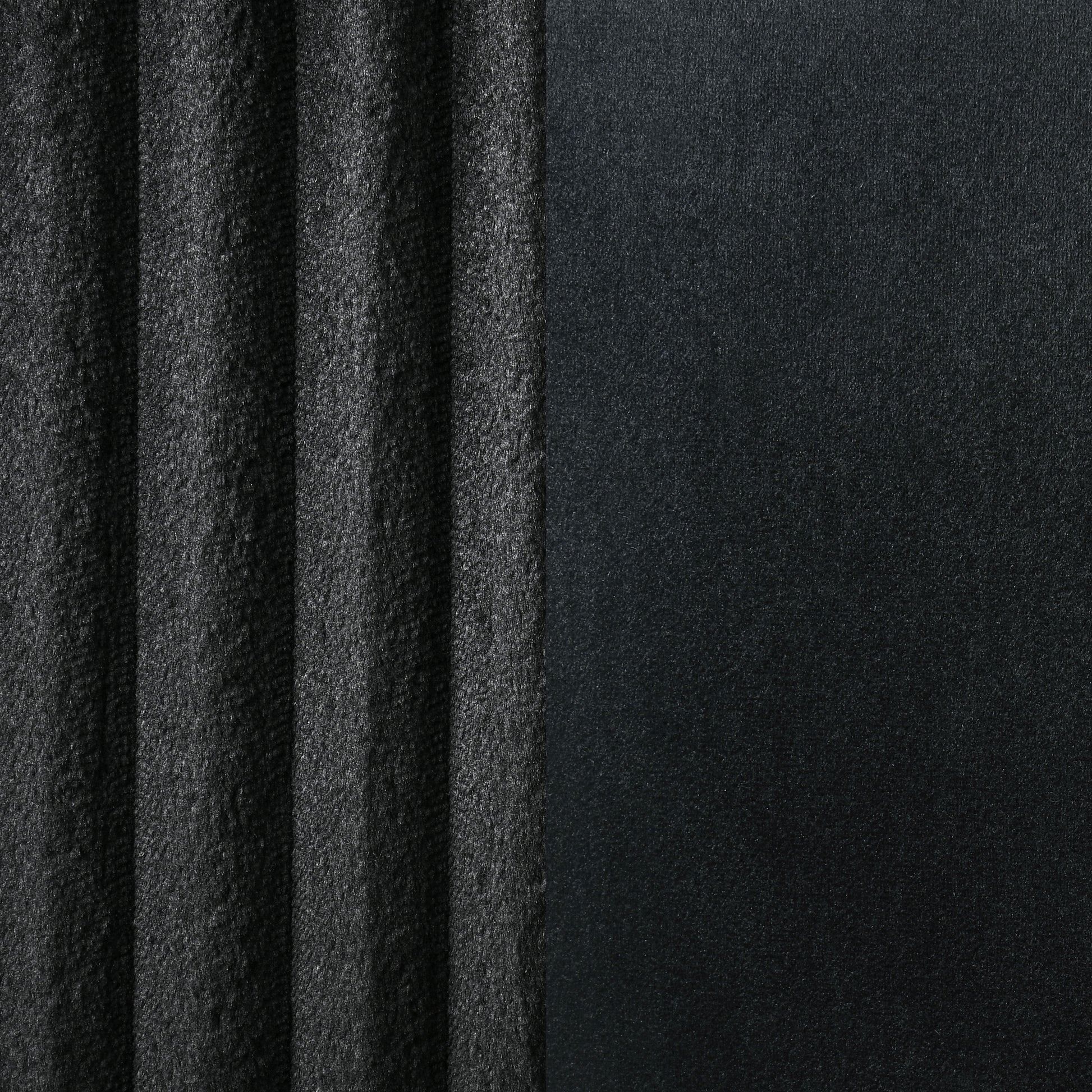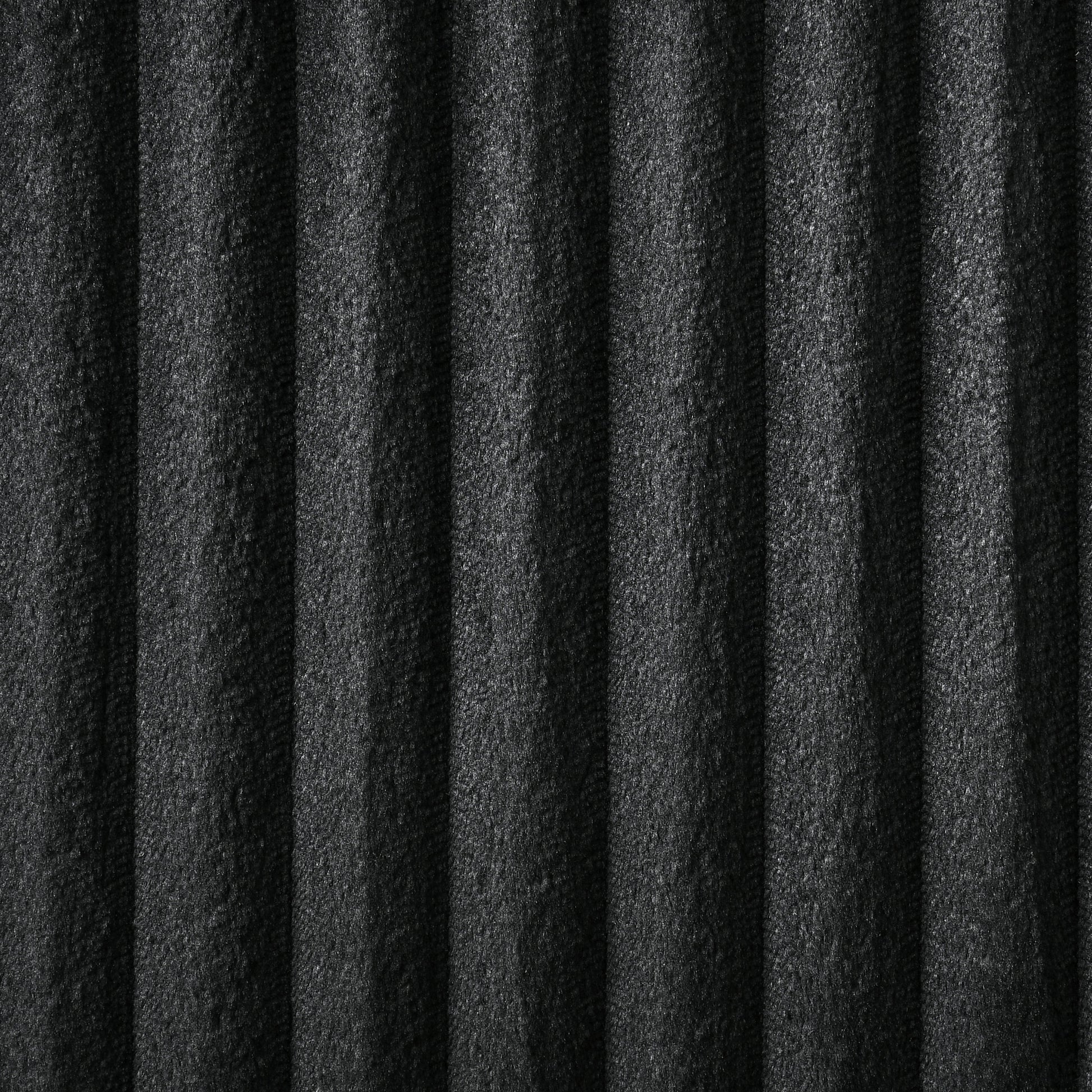 - Black wide channel corduroy upholstery on the seat back adds texture and visual interest