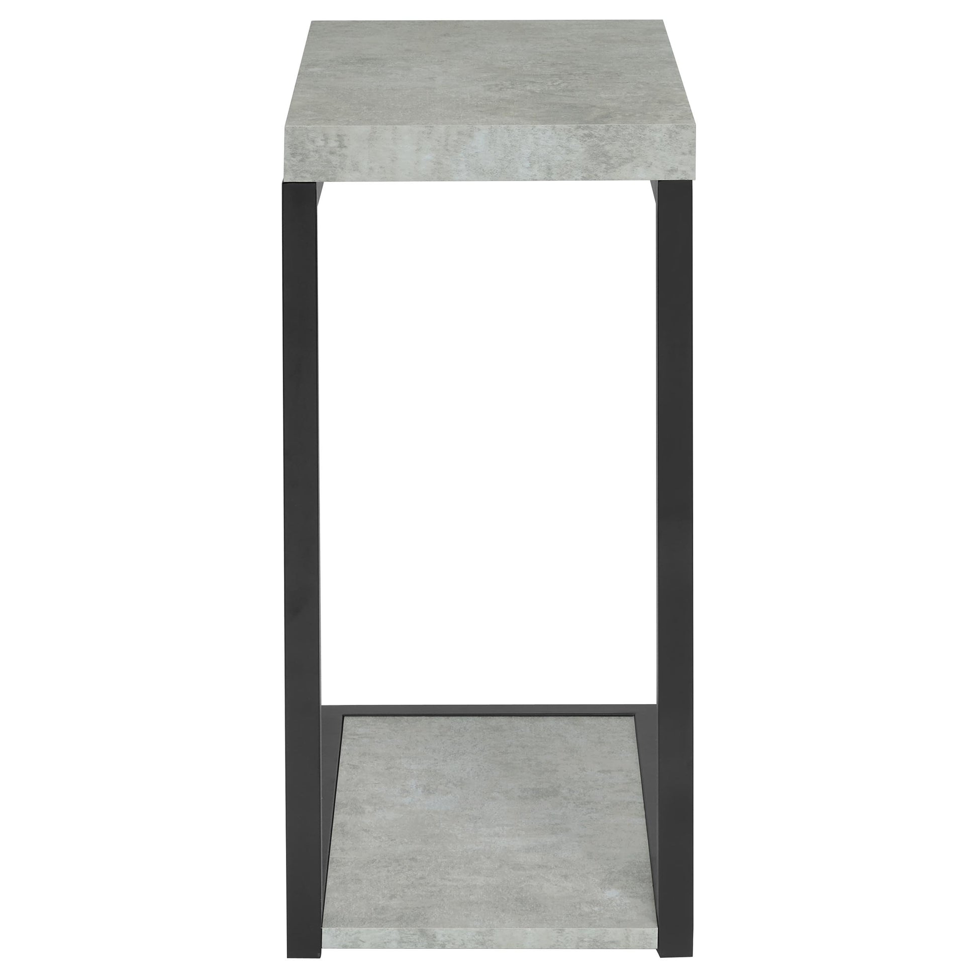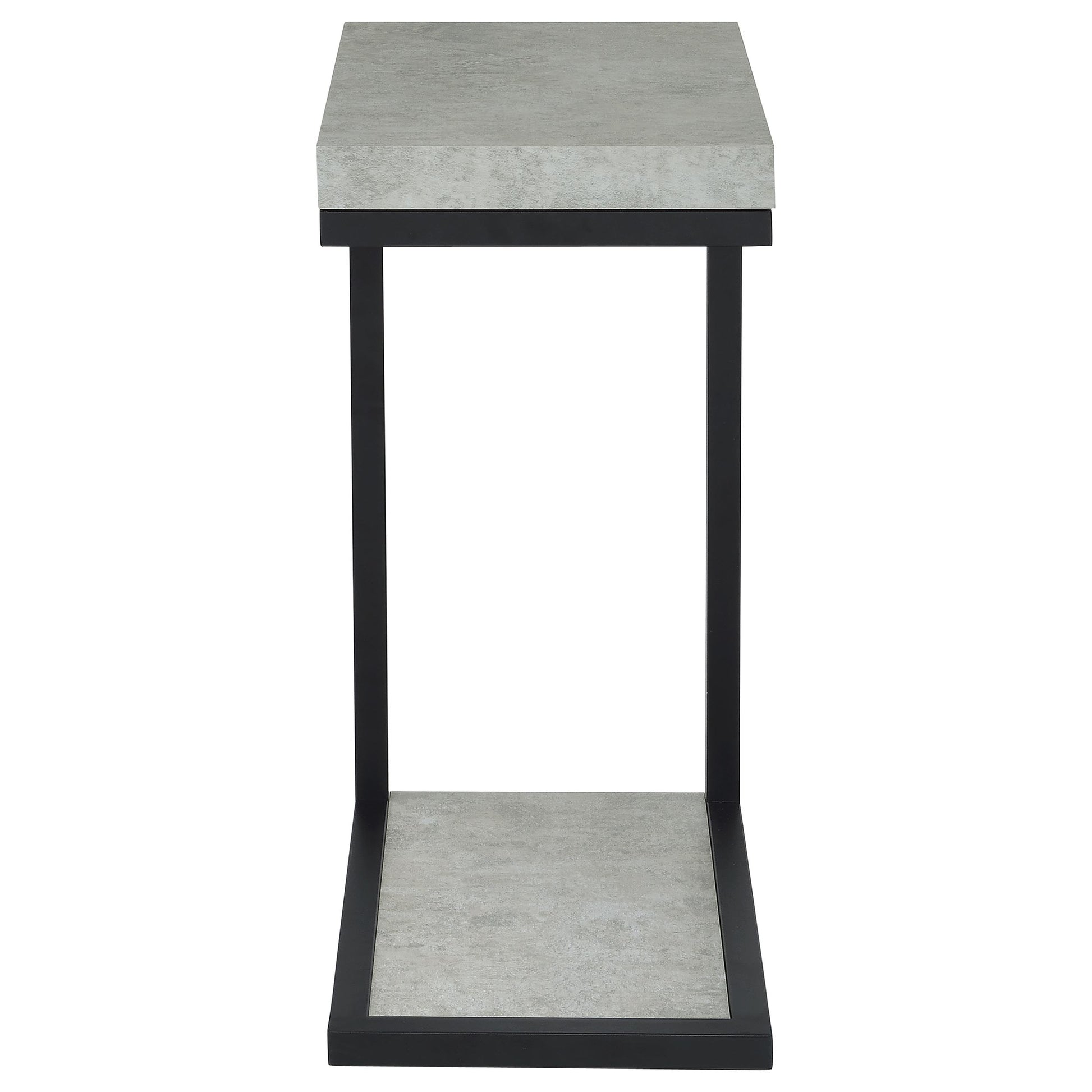 Perfect for a modern living area, this sleek snack table is full of industrial details. Dark and flat, the metal base and legs are full of structure. Thick and defined, the faux cement top sports a warm hue that looks great when paired with delicate features. Bold angles and industrial hues create a depth-filled piece that is perfect for using with a sofa or chair. Add depth with the subtle variations in visual texture from the table top.