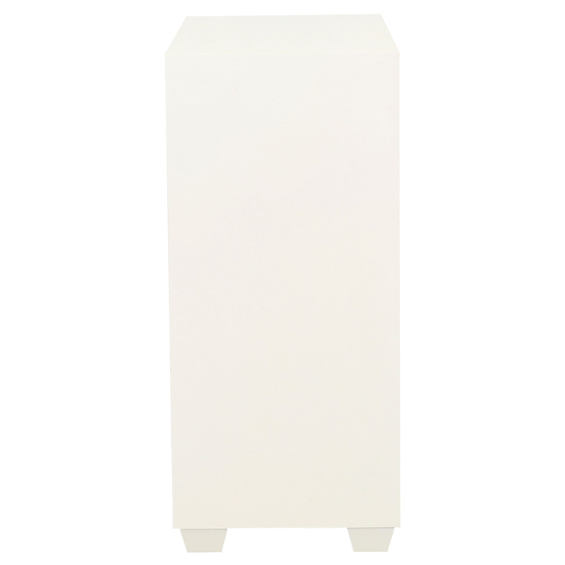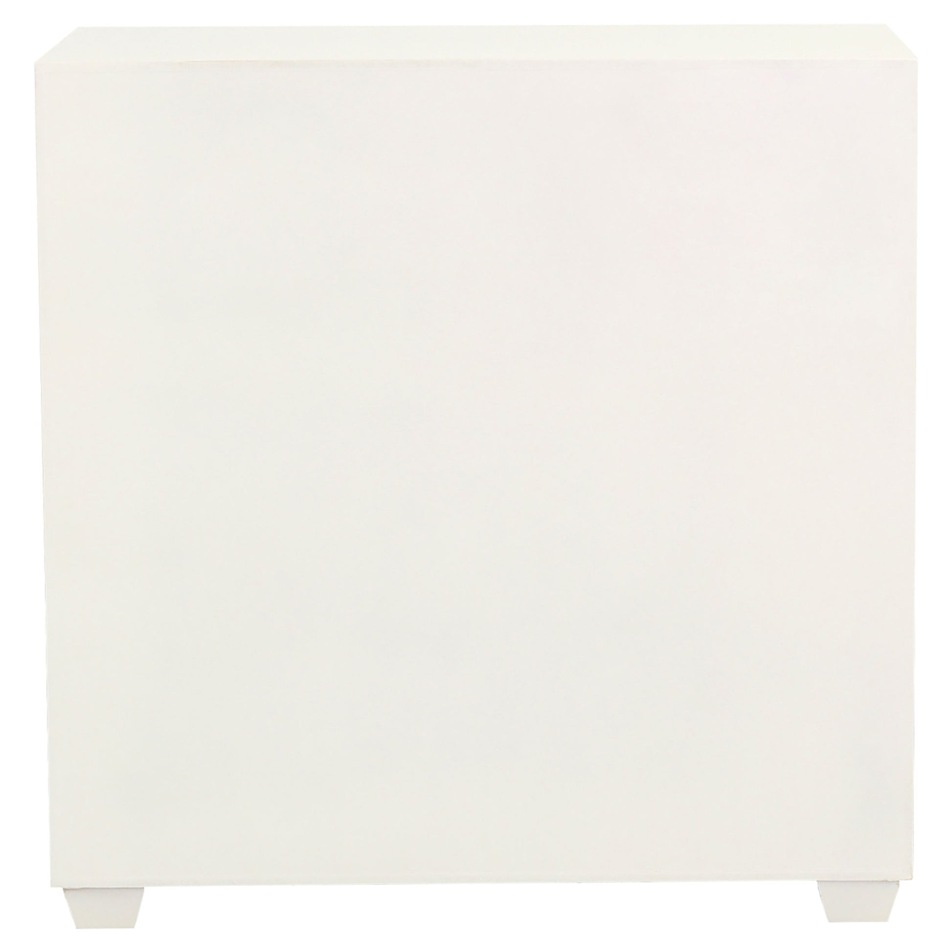 Breathe new life into your decor with this gorgeous, wooden accent cabinet. Elegant tones of white and gold add stylish allure to this piece. The front is adorned with a gold lattice design for a lavish, luxurious look. Gleaming gold hardware rounds out its design in ultra-chic style. This beautiful cabinet is complete with two doors for convenient, concealed storage space.