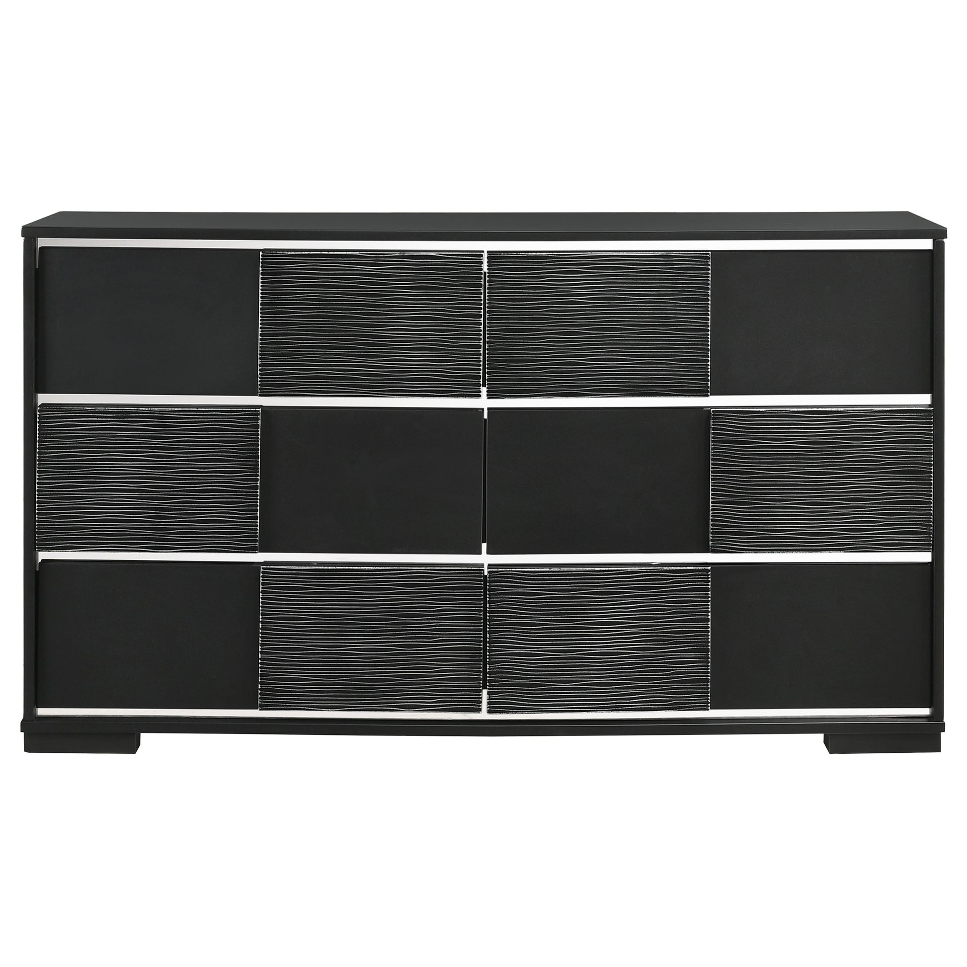 Complete any bedroom with classic sophistication. This gorgeous, transitional bedroom set showcases clean silhouettes for a look that exudes modern appeal. Each piece features chambered trim for a touch of glamour and grace. The headboard has a checkered pattern for an exquisite look and feel. This complete set includes one bed, one nightstand, one dresser, one mirror, and one chest, giving you everything you need for a put-together personal space.