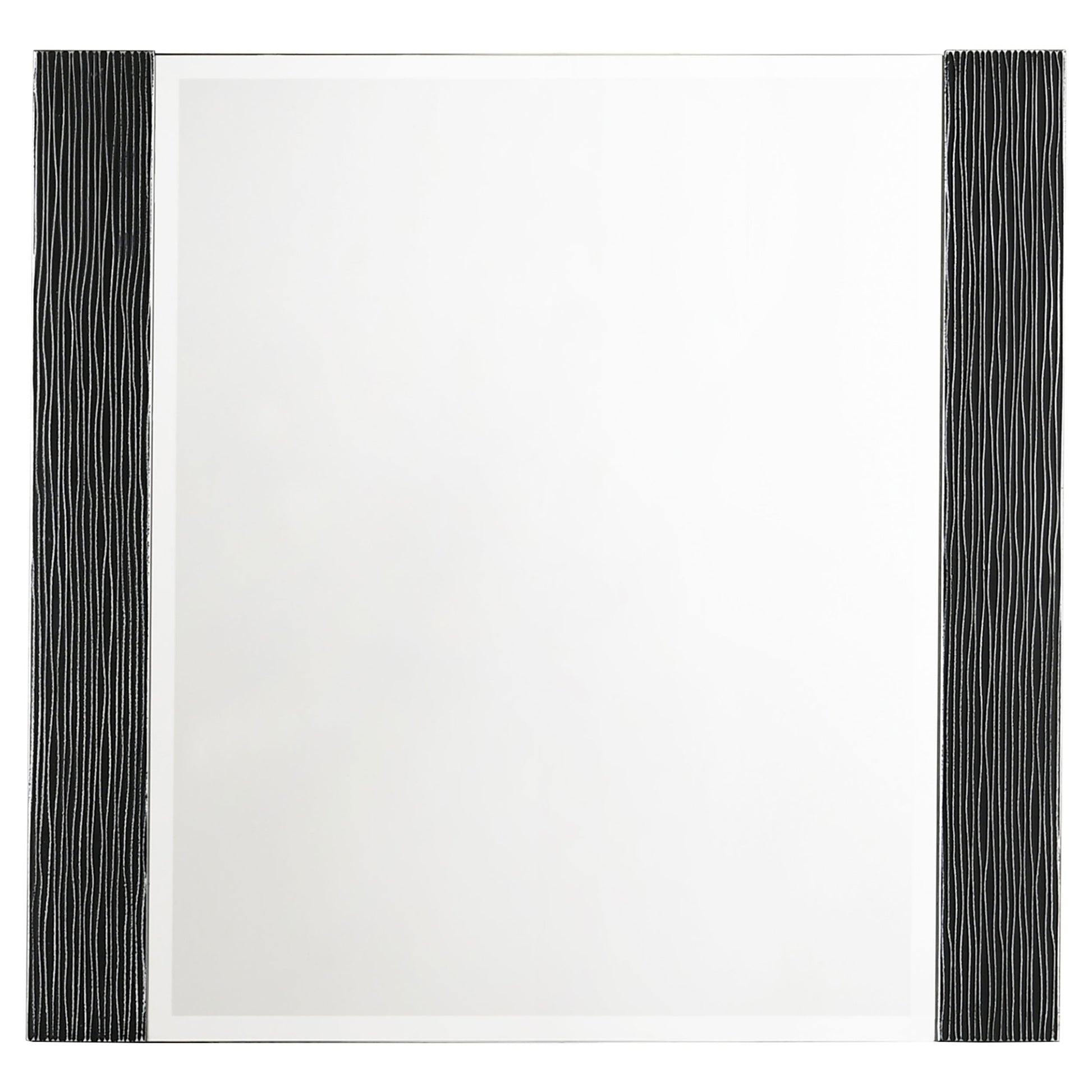 - Case pieces feature chambered trim, chambered drawer fronts, and brushed chrome knobs