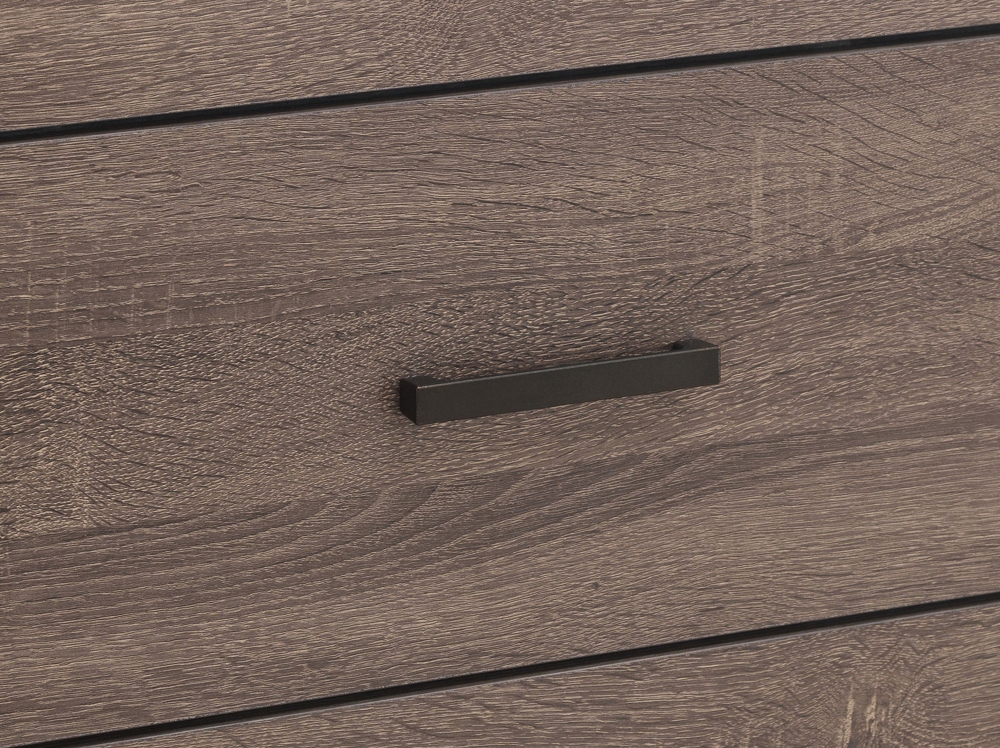 Designed with rustic charm at the forefront, this gorgeous, five-piece set is a fabulous bedroom upgrade. Each piece boasts a no-frills design with a 3D paper veneer for extra protection. The case pieces are equipped with slide-out drawers for generous storage space. The bed features horizontal paneling design for an extra bit of rustic. This rustic bedroom set comes with a bed, nightstand, dresser, mirror, and chest for a put-together personal space.