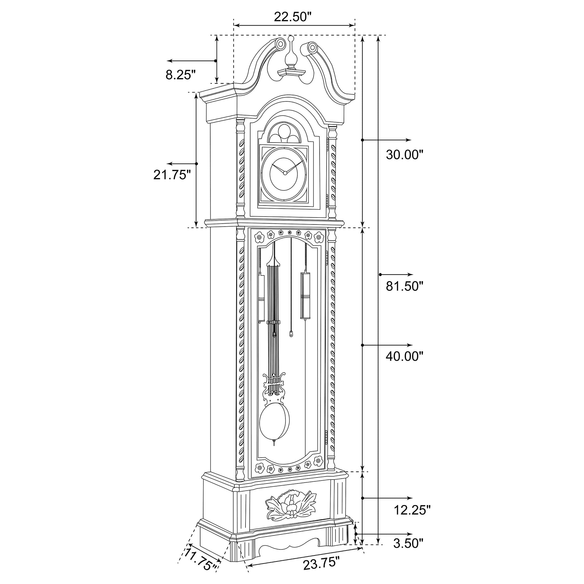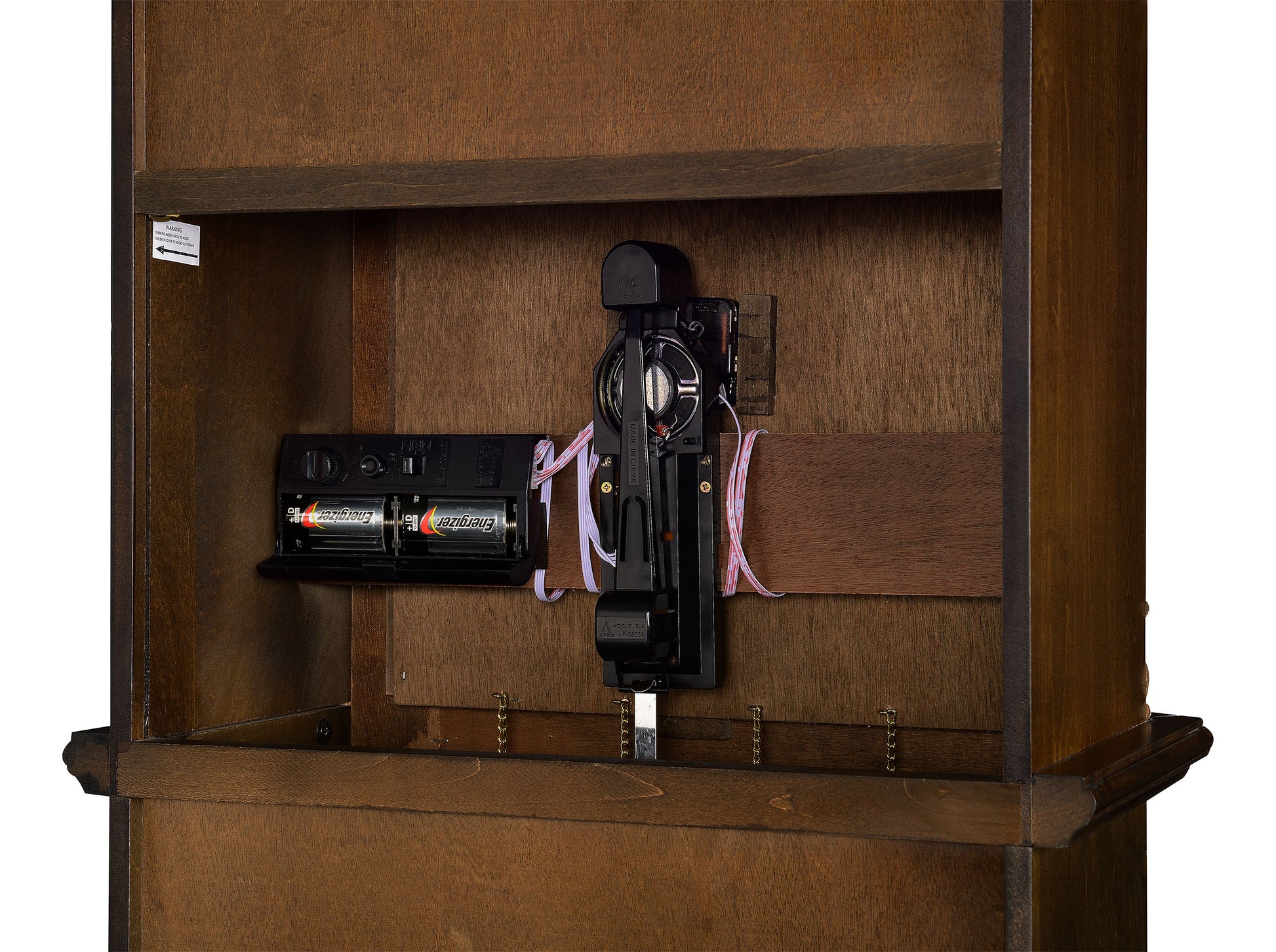 Recreate the romantic aesthetic of past eras. Standing tall and offering a classic look, this grandfather clock becomes a focal point in any space. With a gorgeous brown finish, it delivers versatility to blend with almost any palette. Enjoy the beloved tradition of Westminster clock chimes at regular intervals. This elegant clock features a movement powered by batteries.