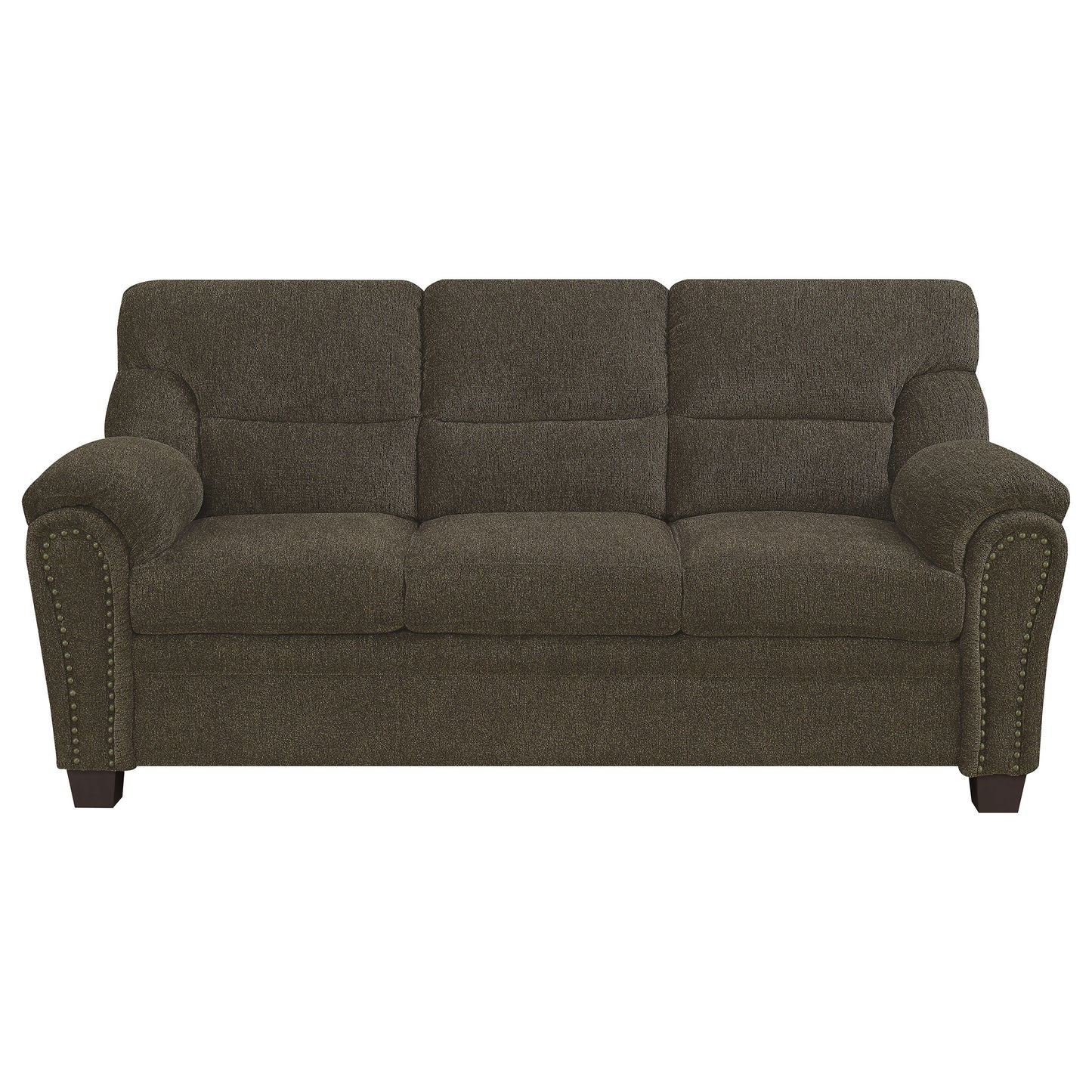 - Decorative nailhead detailing and a plush multi-tonal chenille fabric