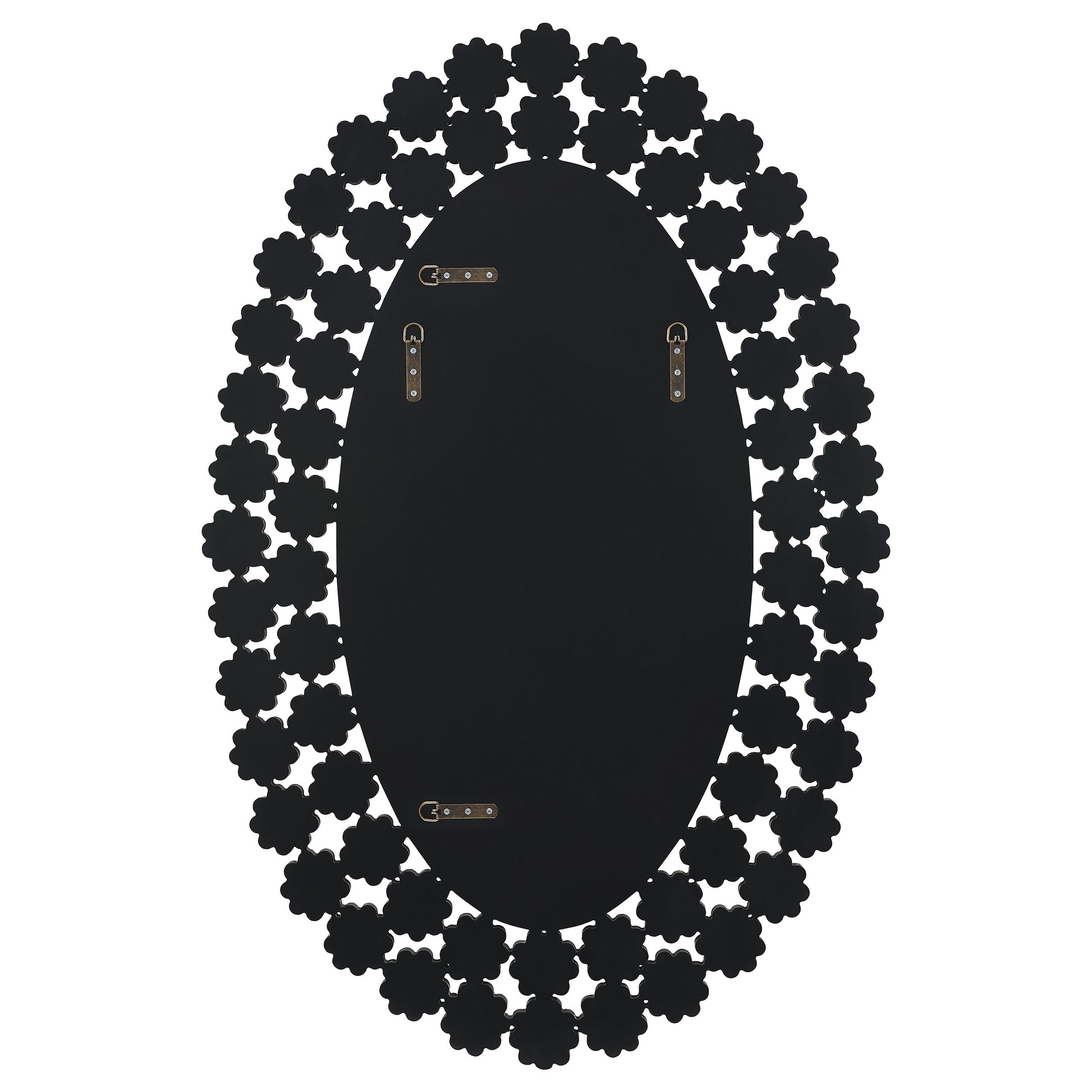 Elegant shapes and sparkling finishes merge to create this breathtaking oval mirror. Surrounded in a glimmering display of floral-inspired, crystal-like blossoms, this elongated, contemporary mirror provides a room the refined sophistication and luxe details it needs. Mount this stunning mirror in an entryway foyer for a dramatic look. Or simple hang it above a pedestal vanity in a powder room to reflect light and shine back at guests. A clean reflective mirror surface lends a sleek, modern touch too.