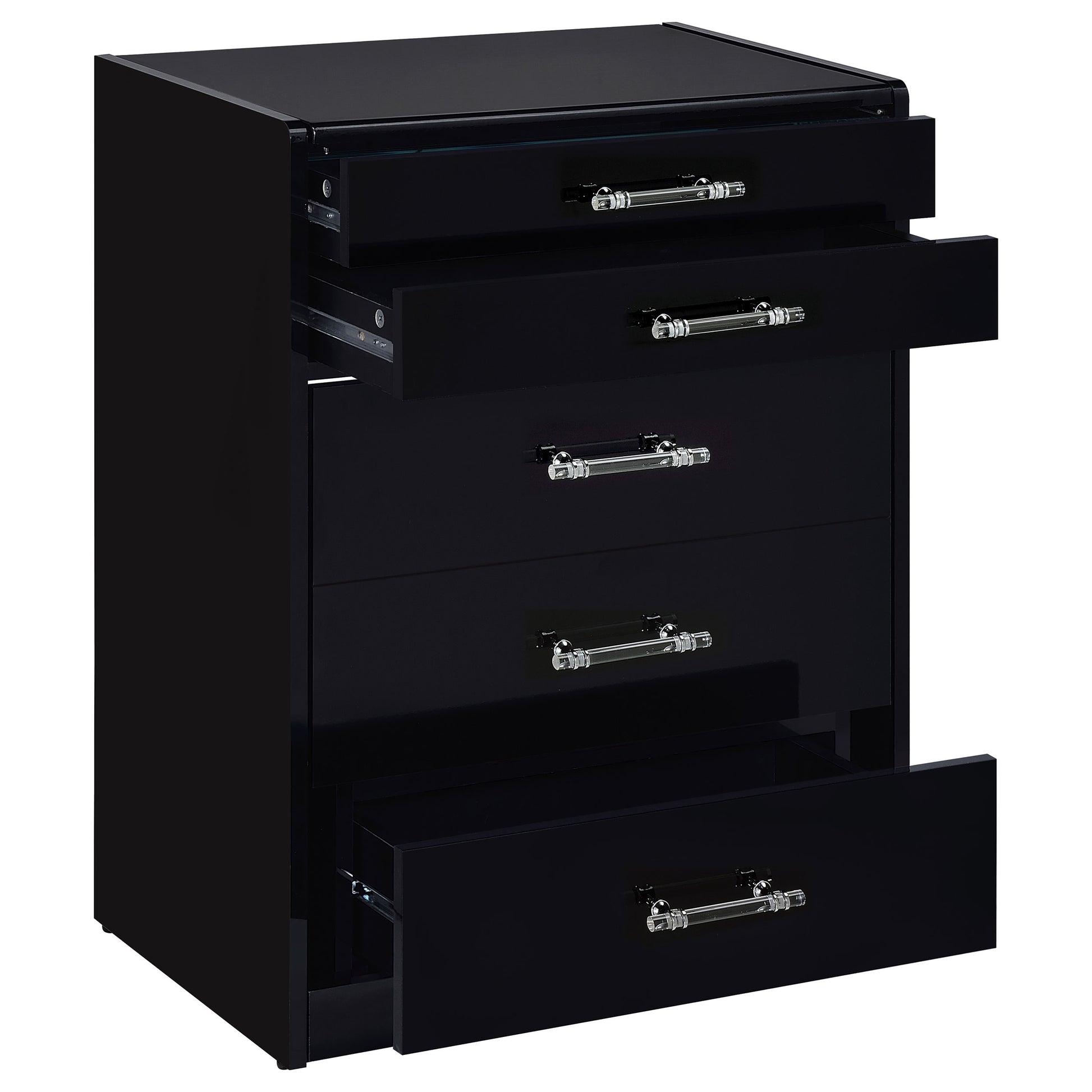 - Clear acrylic with chrome pull handles add a modern, elegant touch