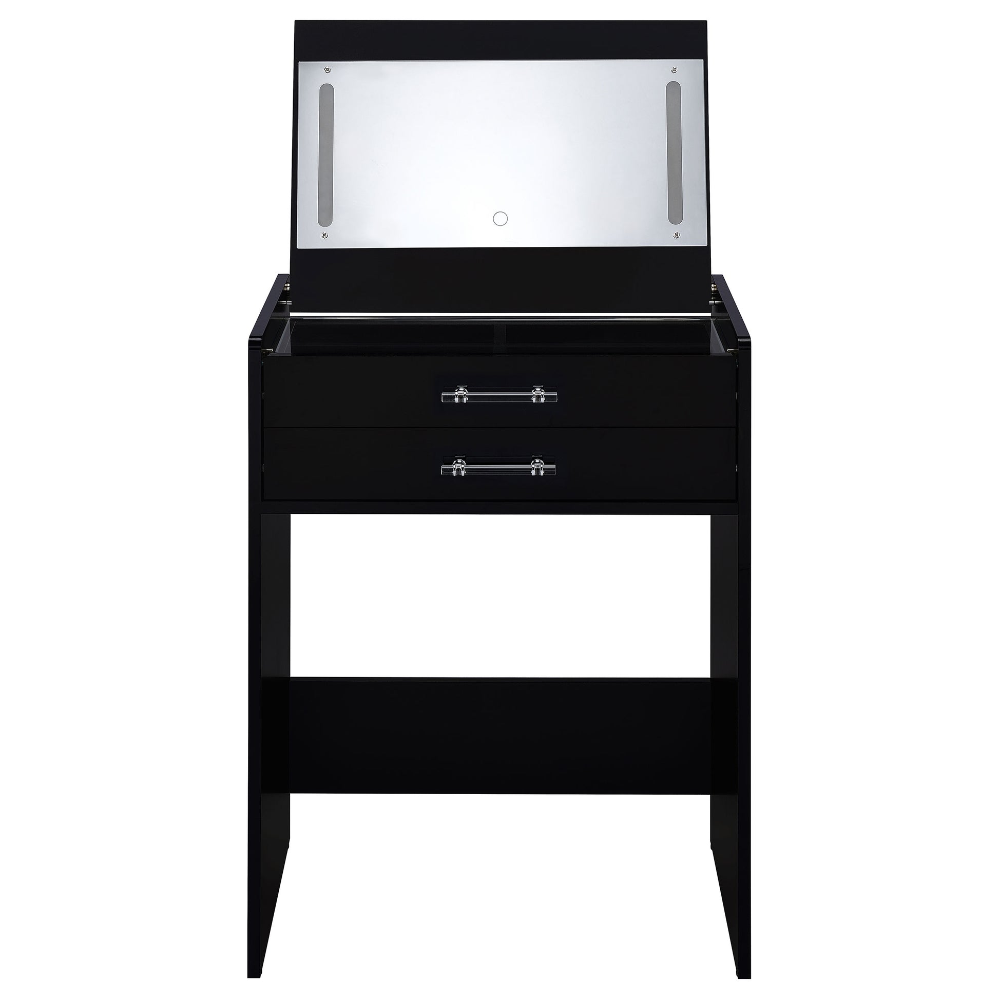 - Black high gloss makeup vanity set crafted from engineered wood with eco-friendly laminate