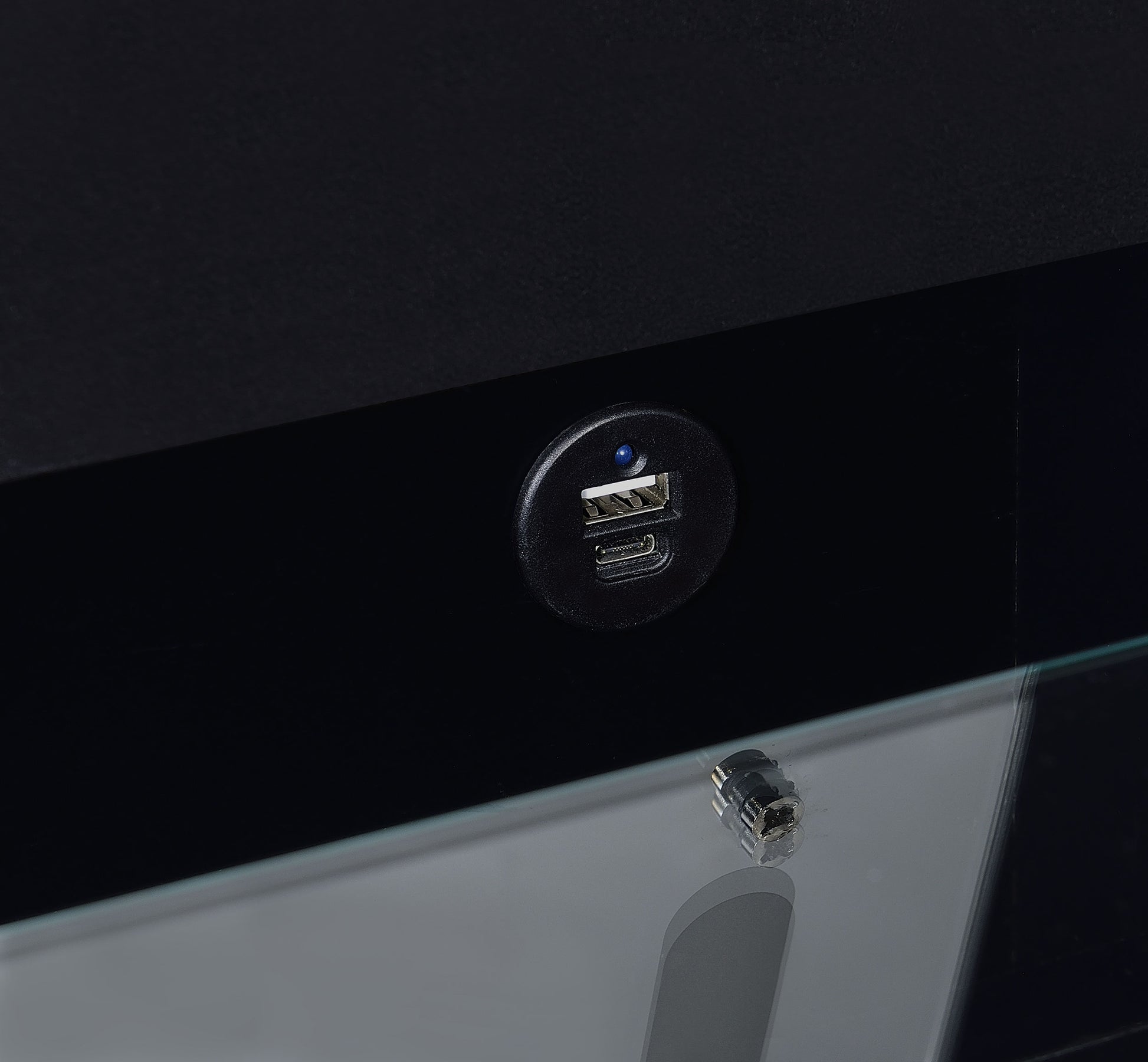 - Built-in dual USB outlet with Type A and Type C ports for convenient device charging