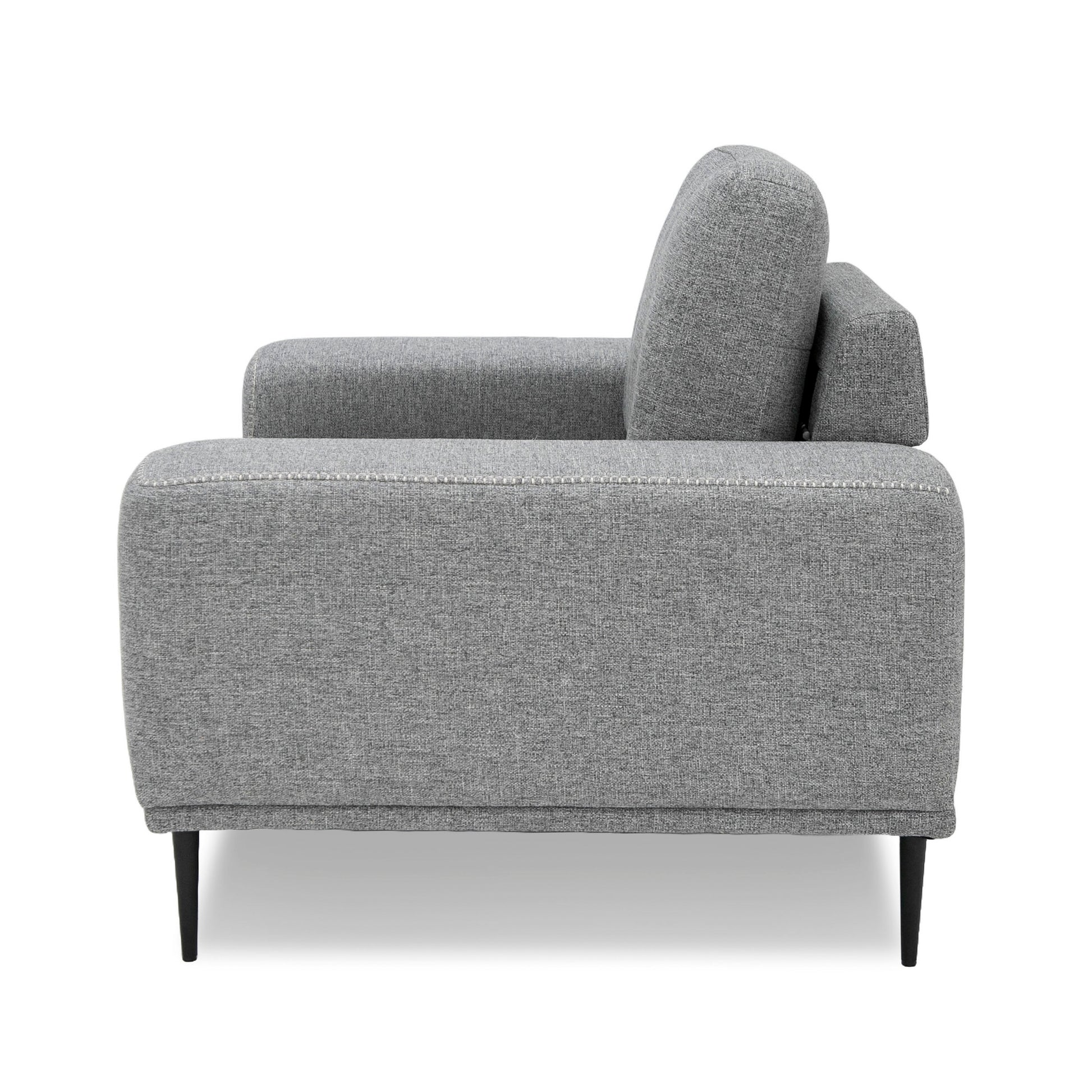 The Fonda Accent Chair is a beautiful contemporary chair that provides an intimate seating arrangement for ones living space. The cushions are upholstered in dark grey fabric with removable cushions for easy cleaning and features simple yet elegant stitching. The Fonda pairs perfectly with its matching two-seater sofa.