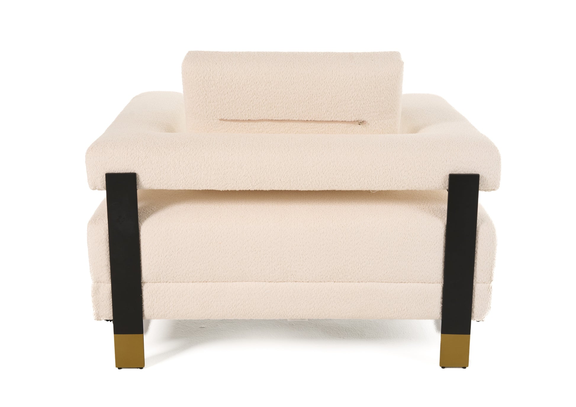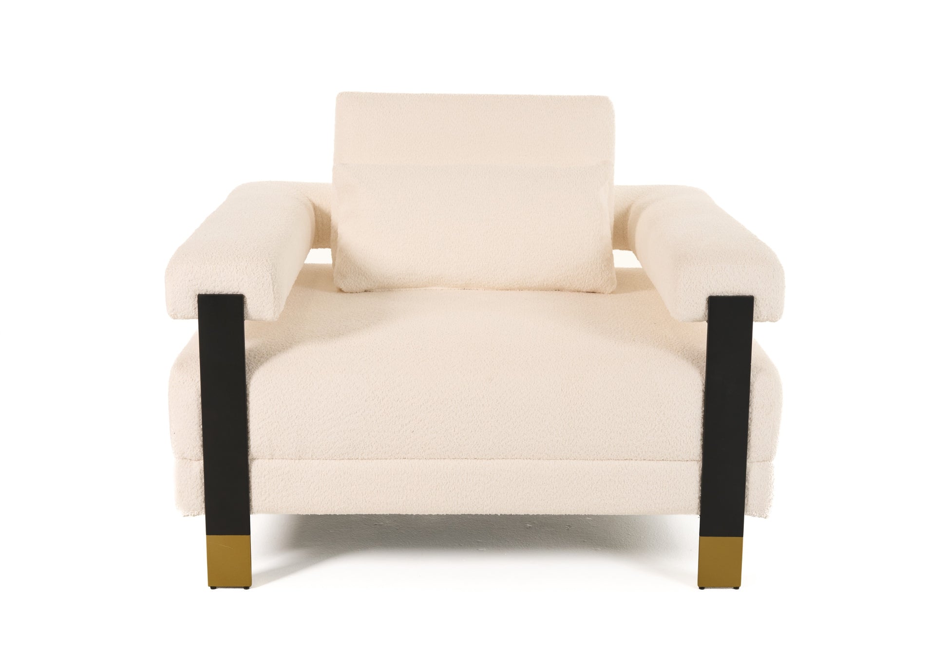 The Divani Casa Stratford Modern Off-White Fabric Accent Chair exudes contemporary elegance with its plush, off-white fabric that invites comfort. Its bold frame features sleek, armrests, accentuated by gold-tone metal legs, striking a perfect balance between modern design and warmth. The relaxed silhouette is complemented by a matching throw pillow, enhancing its aesthetic appeal. Ideal for any chic living space, this accent chair serves as a stylish focal point while offering exceptional comfort and support.