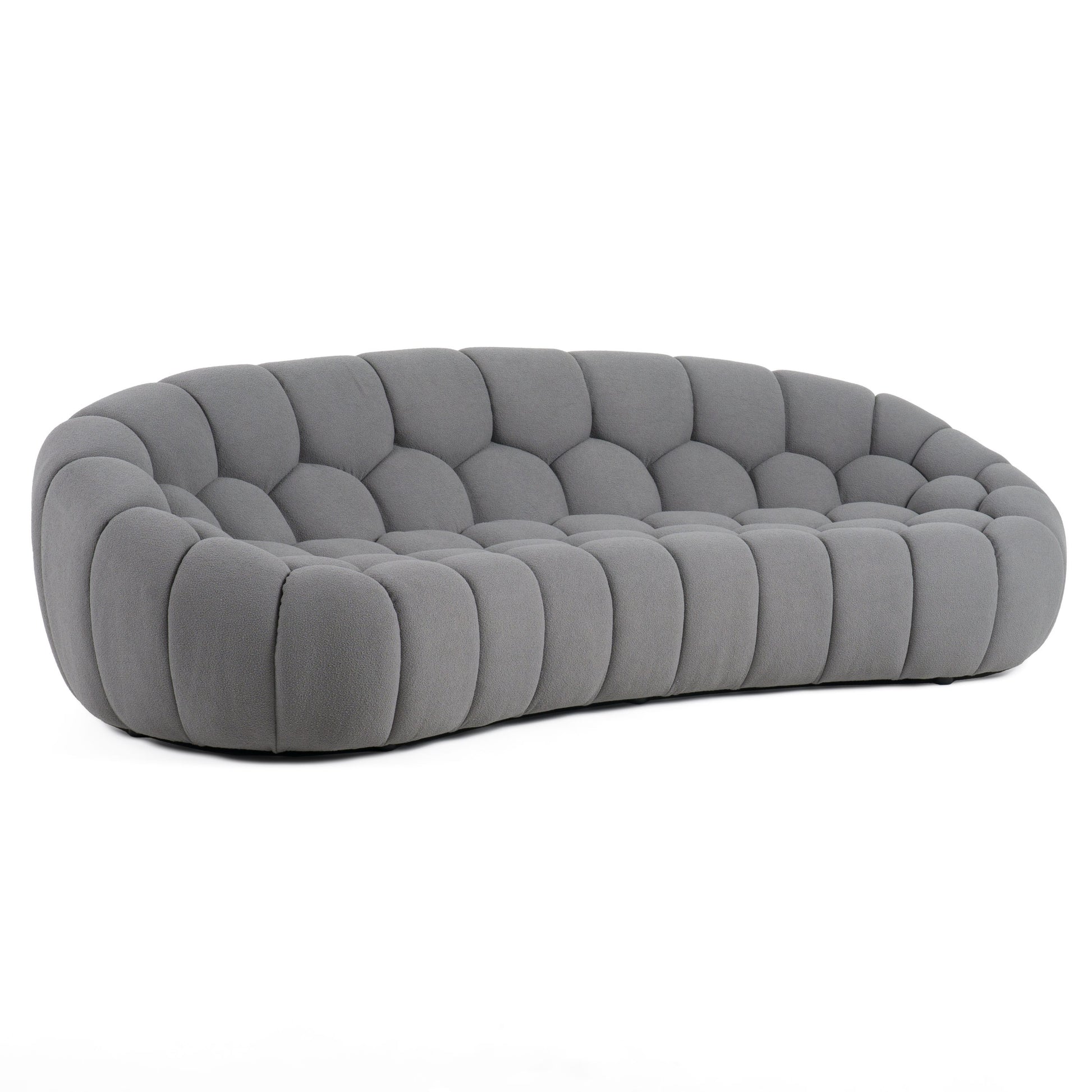 The Yolonda Curved Modern Light Grey Sofa Set offers a stunning collection for your living space. The set includes a sofa, loveseat and single chair. The hexagonal tufted cushions provide a unique, non-traditional and stylish design for the sofa as well the teddy fabric upholstery providing maximum comfort.
