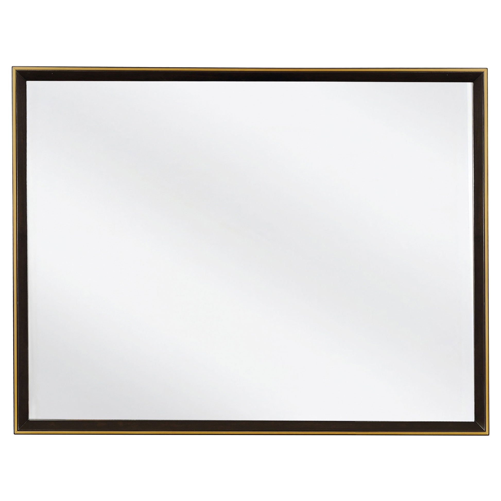 Showcasing stunning modern design, this queen five-piece bedroom set has geometric details. A warm smoked peppercorn finish on the high upholstered headboard adds depth throughout a space. This set is versatile and streamlined with a nine-drawer dresser, two-dresser nightstand and shelf, and two-drawer chest with doors. Introduce structure and personality with retro inspired details. Dress up the tall dress with the included mirror for a clean look.