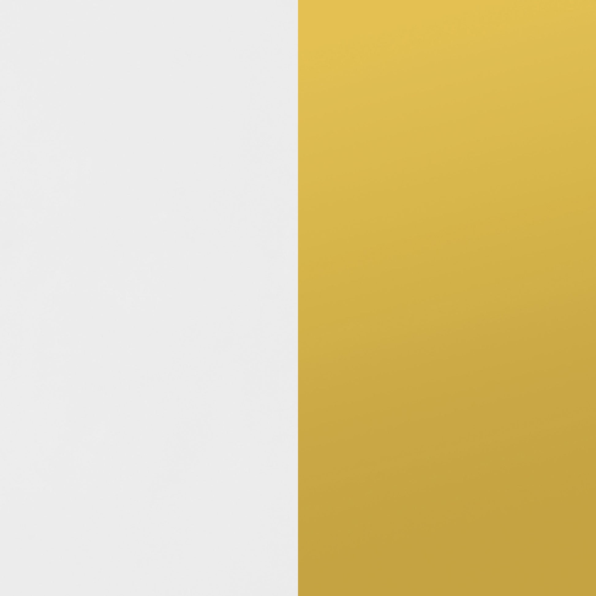 Clean lines and a chic two-tone design complete the sophisticated, modern accent cabinet. With Art Deco-inspired elements like open box-like base supports and a bright white finish, this elegant cabinet lends a glamorous touch to a space. Each open stainless steel metal base is finished in a lustrous gold tone, mirroring the bordered edges of the cabinet doors and the hardware. Inside the wide cabinet doors are two versatile, adjustable shelves, allowing you to organize and store items as you wish. Place this stylish accent cabinet in a space for an eye-catching, luxe addition.