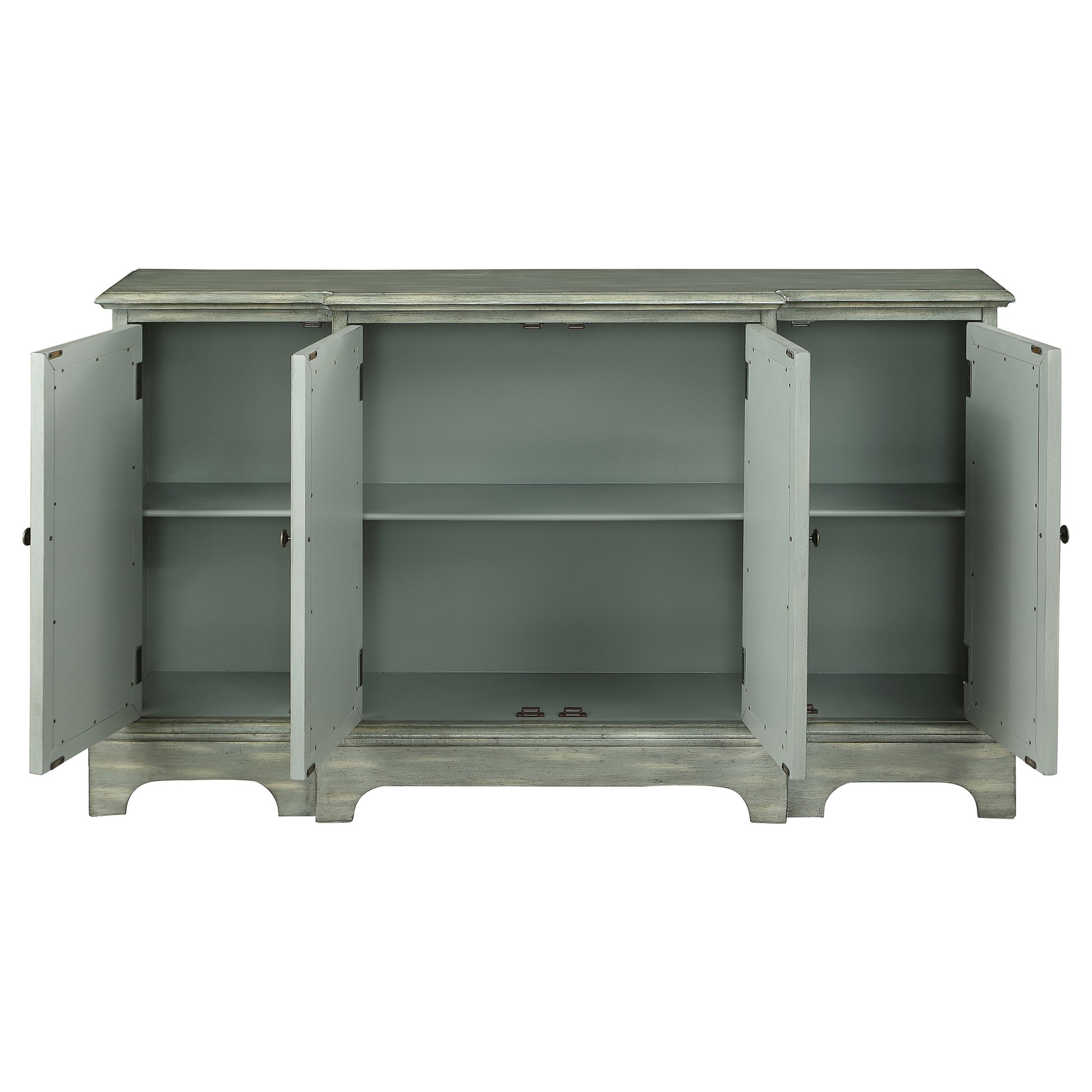 - Transitional accent cabinet in antique grey finish displays your exquisite taste
