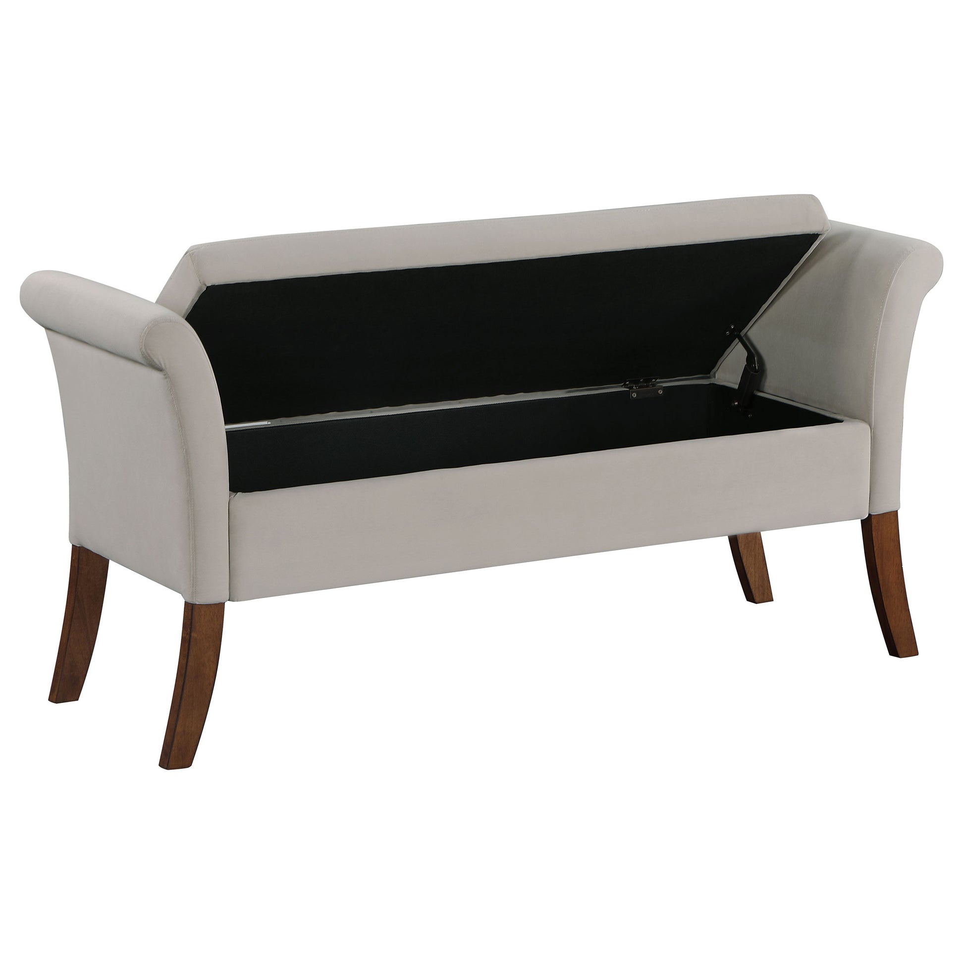 Farrah Velvet Upholstered Rolled Arm Storage Bench Beige