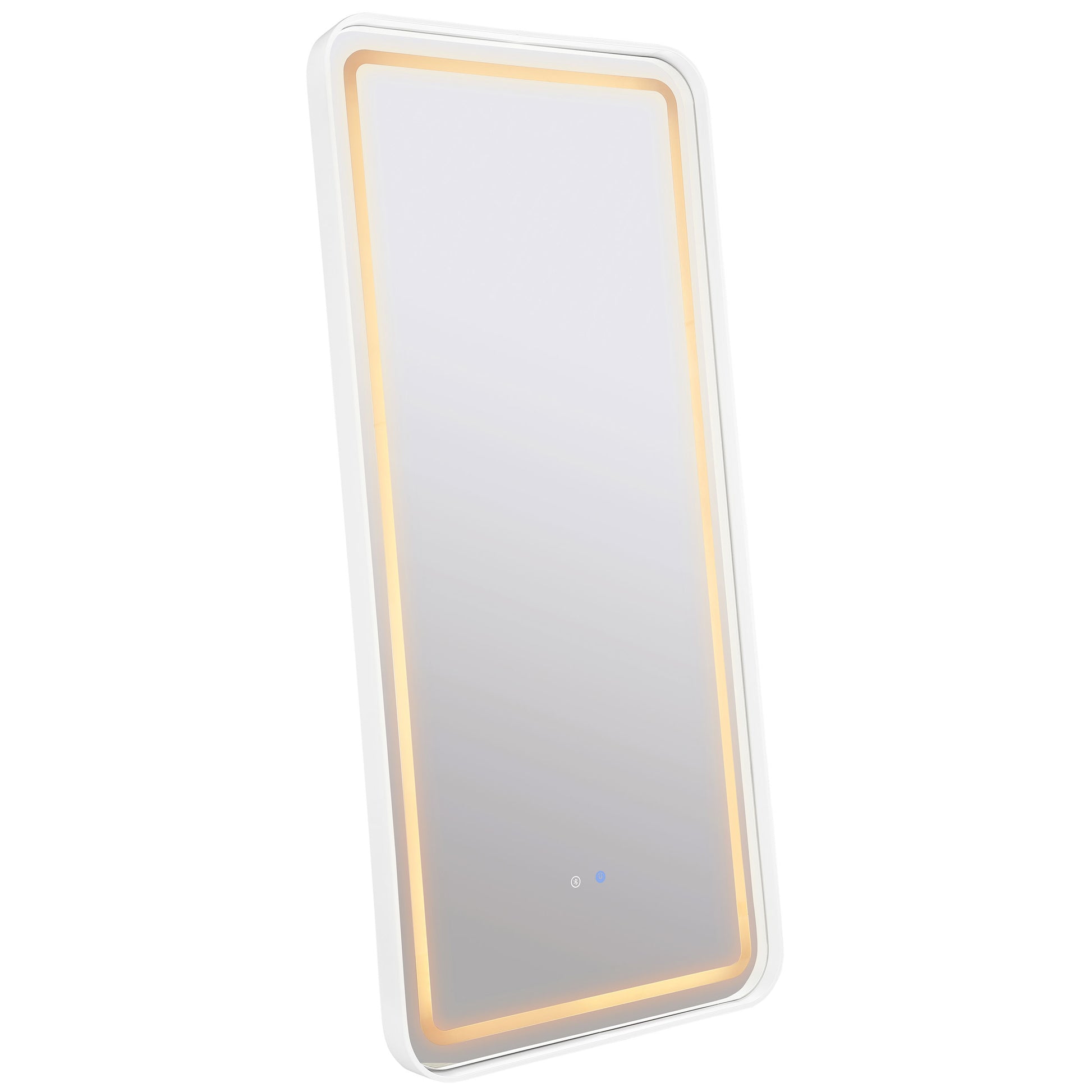 Upgrade your bath or dressing area with the convenience of a lighted standing mirror. Perfect for full length outfit checks, it's a modern design with an integrated LED light and built-in Bluetooth speaker. The speaker is perfect for music or podcasts while you're readying for the day, and it connects easily to your smart phone or tablet. The tall mirror includes rounded corners, softening its silhouette, and delivers even energy efficient LED illumination. A tip-over restraint is included to ensure the mirror stays upright.