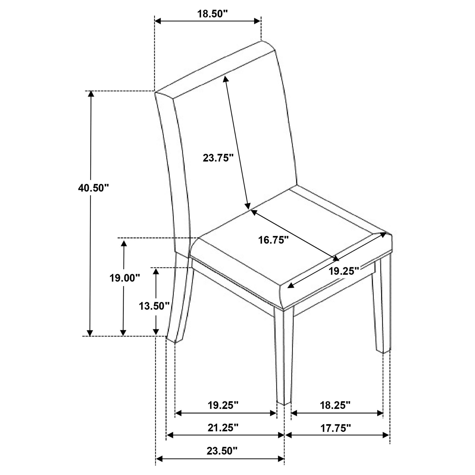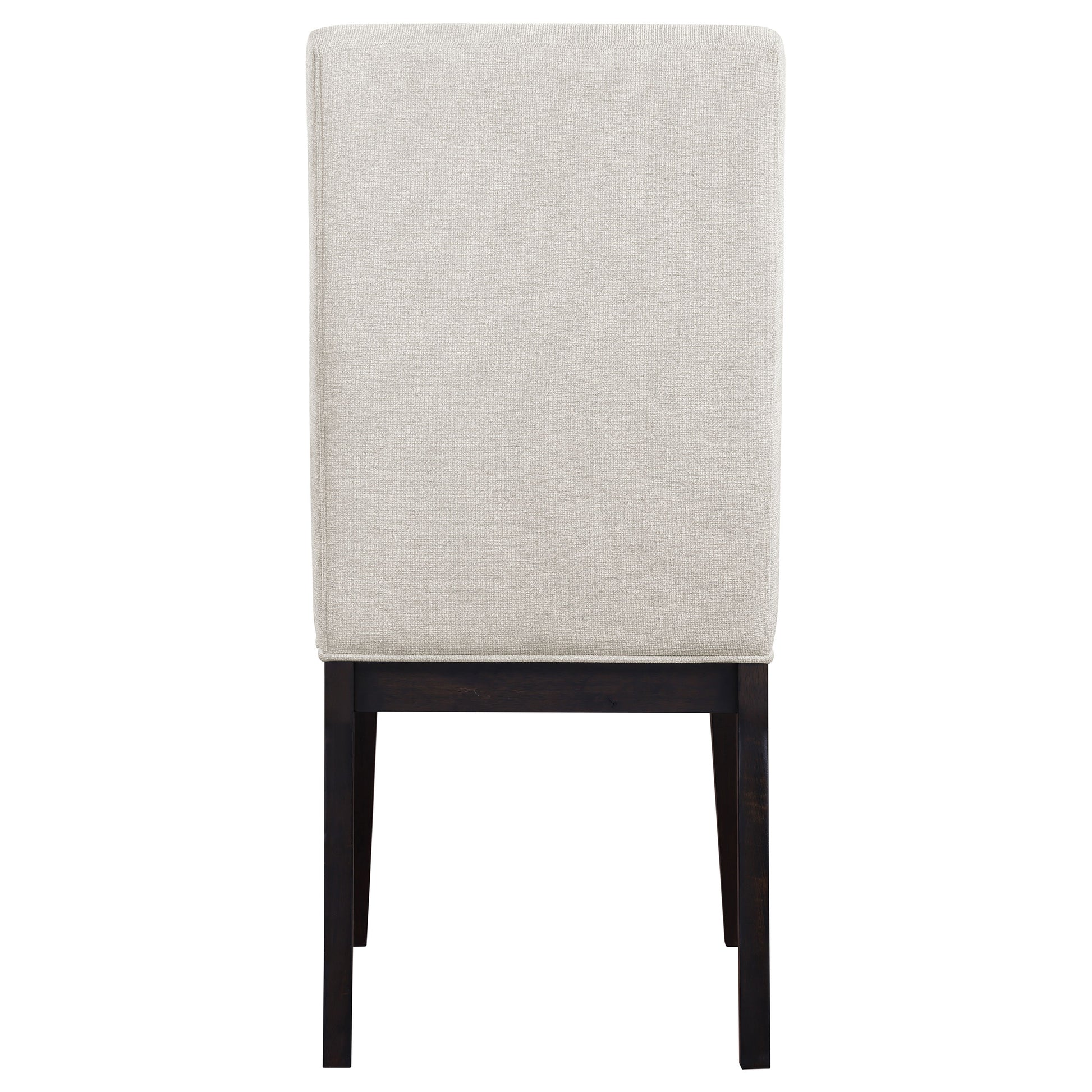 Revamp the look of your kitchen or dining room table with a set of two modern side chairs. Each boasts strong, durable construction with Asian hardwoods and MDF paired with acacia veneer. A dark brown finish complements the frame, which includes straight legs with a hint of angularity for excellent comfort. A tall back and comfortable seat are complete with foam cushioning for support. Cream upholstery is a crisp complement, offering contrasting elegance and character that stands out.