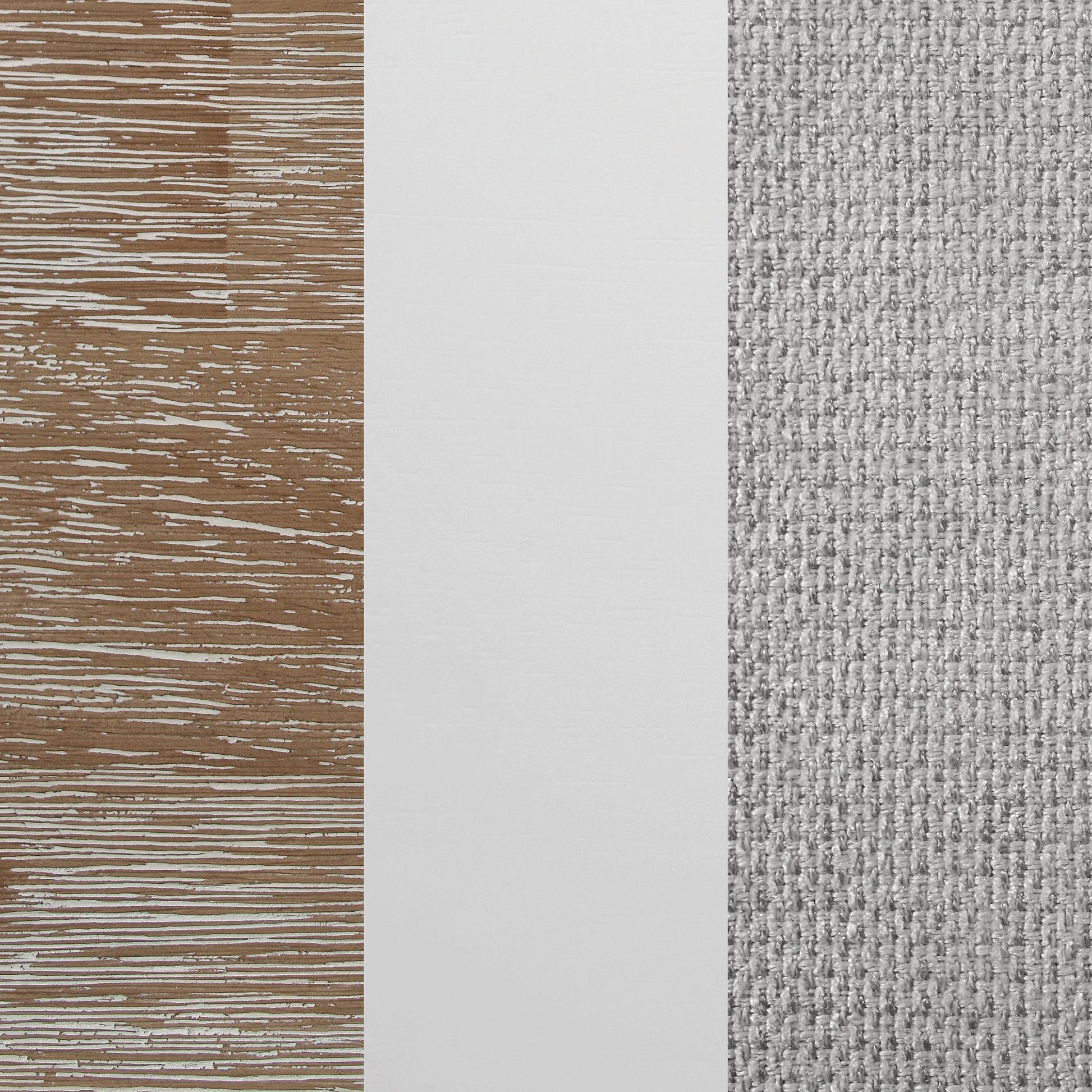 - Two-tone table design features a crisp white base and a wire brushed brown wood tabletop