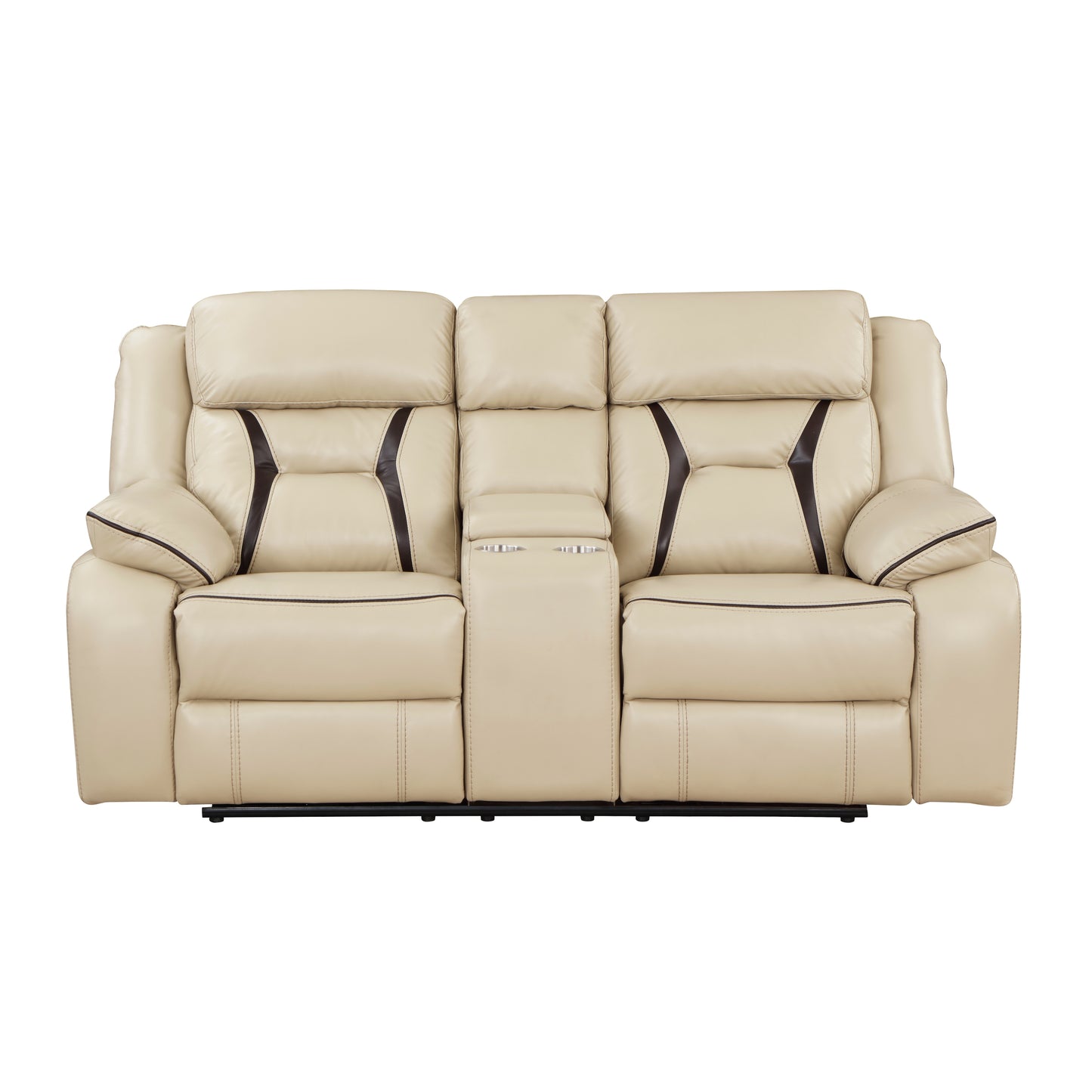 Introducing the Amite Collection Loveseat by Homelegance, where ultra-modern design meets exceptional functionality. Upholstered in luxurious beige premium faux leather, this stylish piece features dark brown accents that enhance its contemporary profile. Experience ultimate relaxation with the power reclining mechanism, allowing you to effortlessly find your perfect position. The Loveseat is equipped with a center console that offers hidden storage and two cup holders for your convenience. Additionally, a side-mounted USB port ensures your devices stay charged while you unwind in comfort.