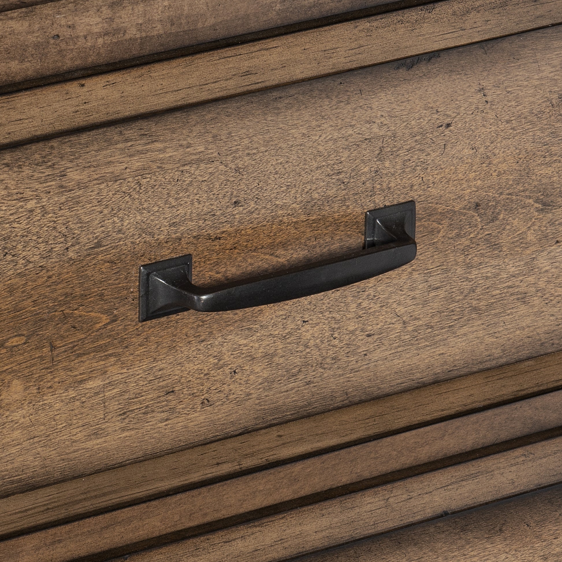 The nightstand features two spacious dovetail drawers, each equipped with smooth ball bearing glides, ensuring effortless access to your essentials. The drawers are adorned with flat black tone bar pulls, offering a striking contrast to the warm wood finish and adding a touch of modern sophistication.