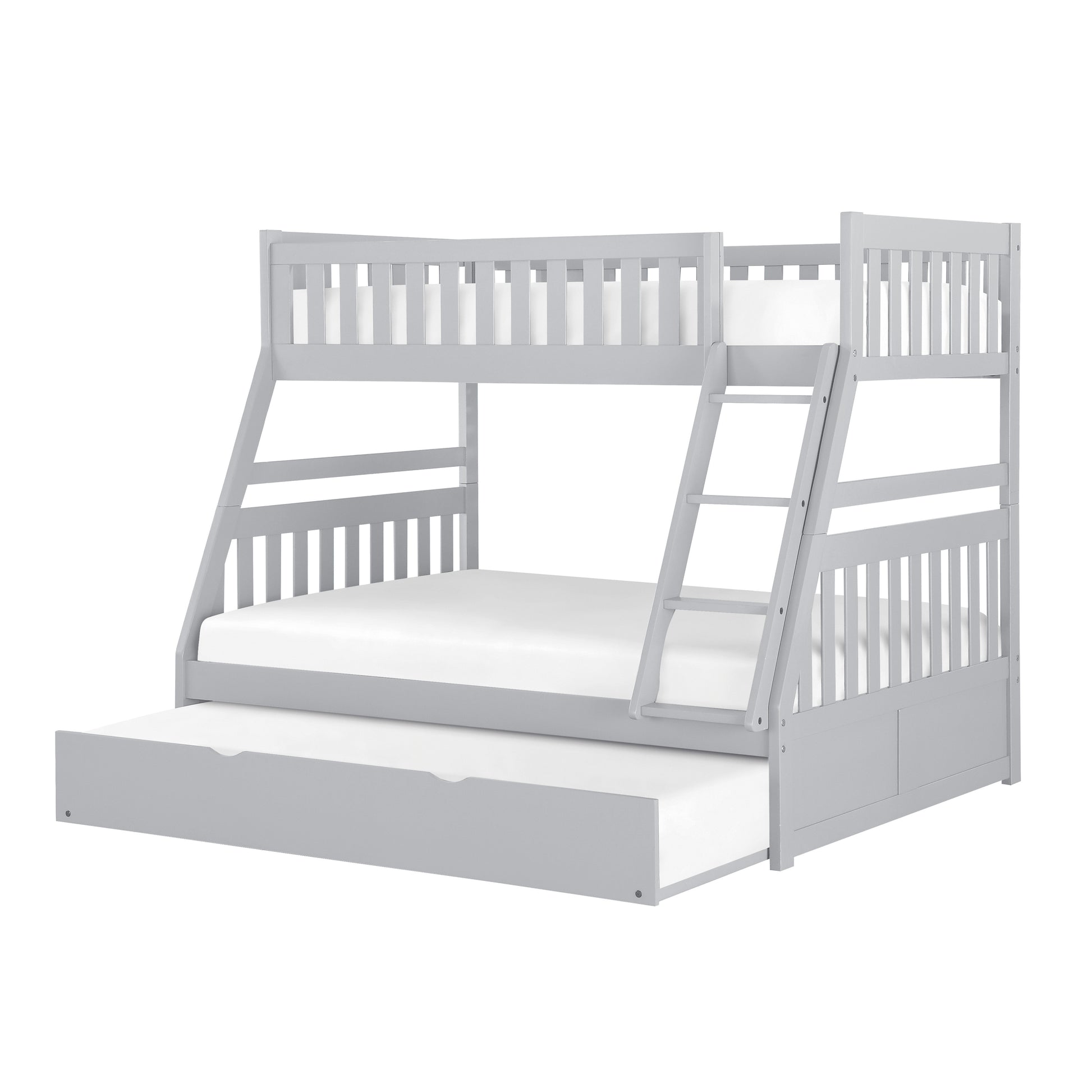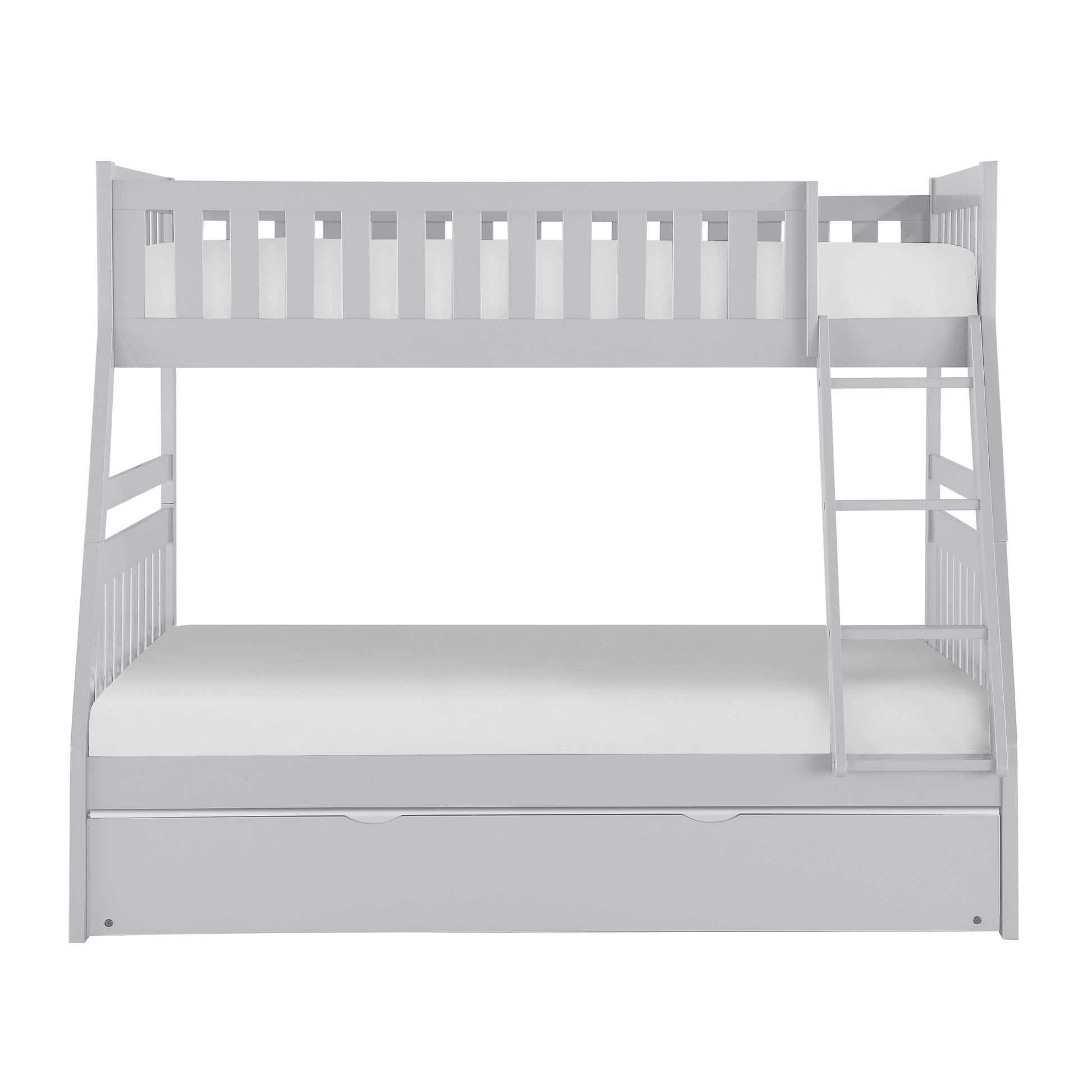 Transform your child's bedroom into a stylish and functional space with the Homelegance Orion Collection Twin/Full Bunk Bed with Twin Trundle. This beautifully designed bunk bed maximizes sleep space while adding a contemporary touch to any youth bedroom.