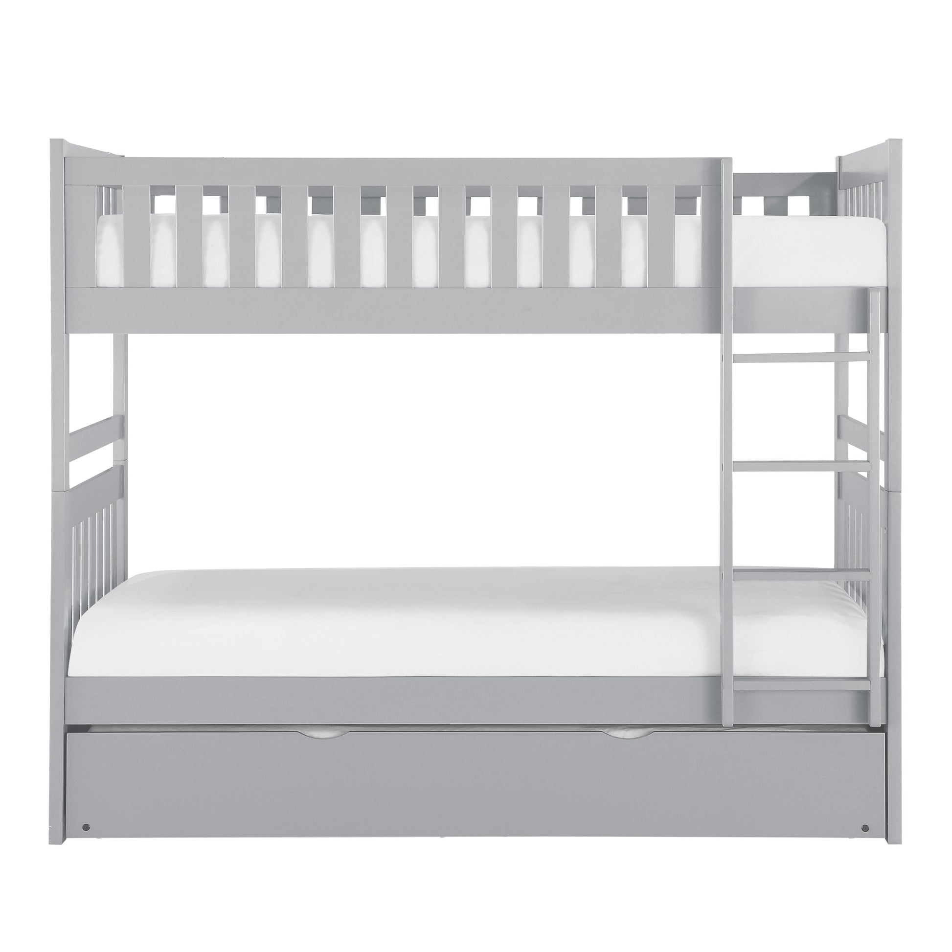 Transform your child's bedroom into a stylish and functional space with the Homelegance Orion Collection Twin/Twin Bunk Bed with Twin Trundle. This beautifully designed bunk bed features a sleek gray finish, making it a versatile addition to various youth bedroom themes.