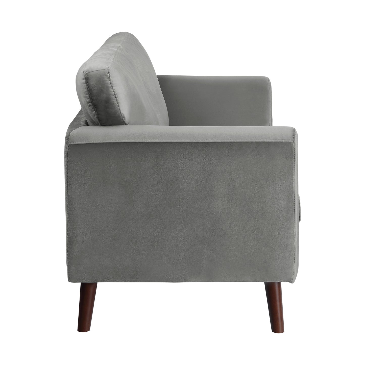 Introducing the Tolley Collection Loveseat by Homelegance, a stunning addition to any modern living space. Its vibrant gray velvet upholstery exudes elegance, while the streamlined profile enhances your home’s aesthetic. Supported by dark brown finished wood legs, this loveseat combines style and comfort seamlessly. The solid wood and plywood frame ensures durability, while foam padding over pocket coils provides a cozy seating experience. With reversible back and seat cushions, you can easily refresh its look, and removable cushion covers make maintenance a breeze. Elevate your living room with the Tolley Collection Loveseat, where contemporary design meets everyday functionality.