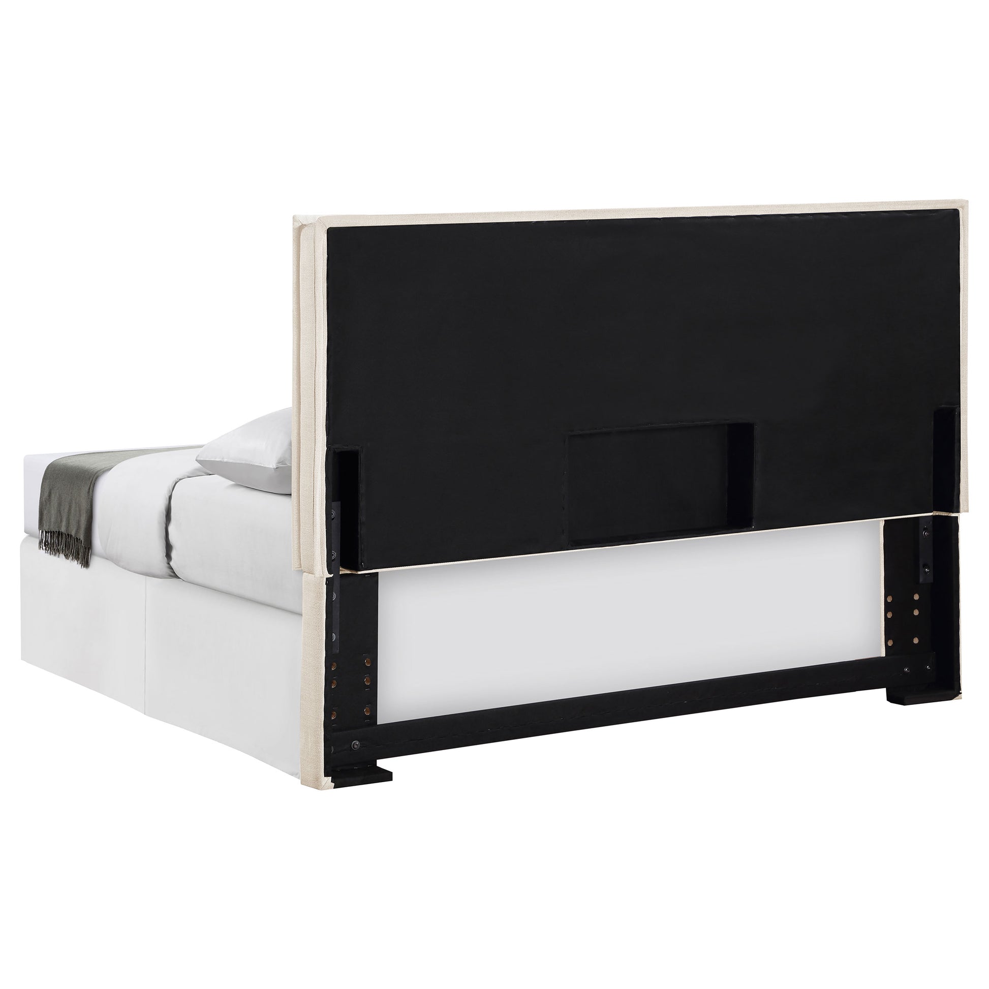 Inspire modern artistry in a contemporary bedroom space with a headboard that shines as a focal point. This updated headboard creates a mix of clean lines and tempting upgrades to transform a bedroom into a haven for relaxation. Versatile and timeless, flange details dress up the outer border, adding a dimensional effect. Textured sand finish fabric wraps over the headboard to deliver a light essence and a palette that accommodates a variety of options for matching case pieces, beds, and accessories. Constructed of pine wood.