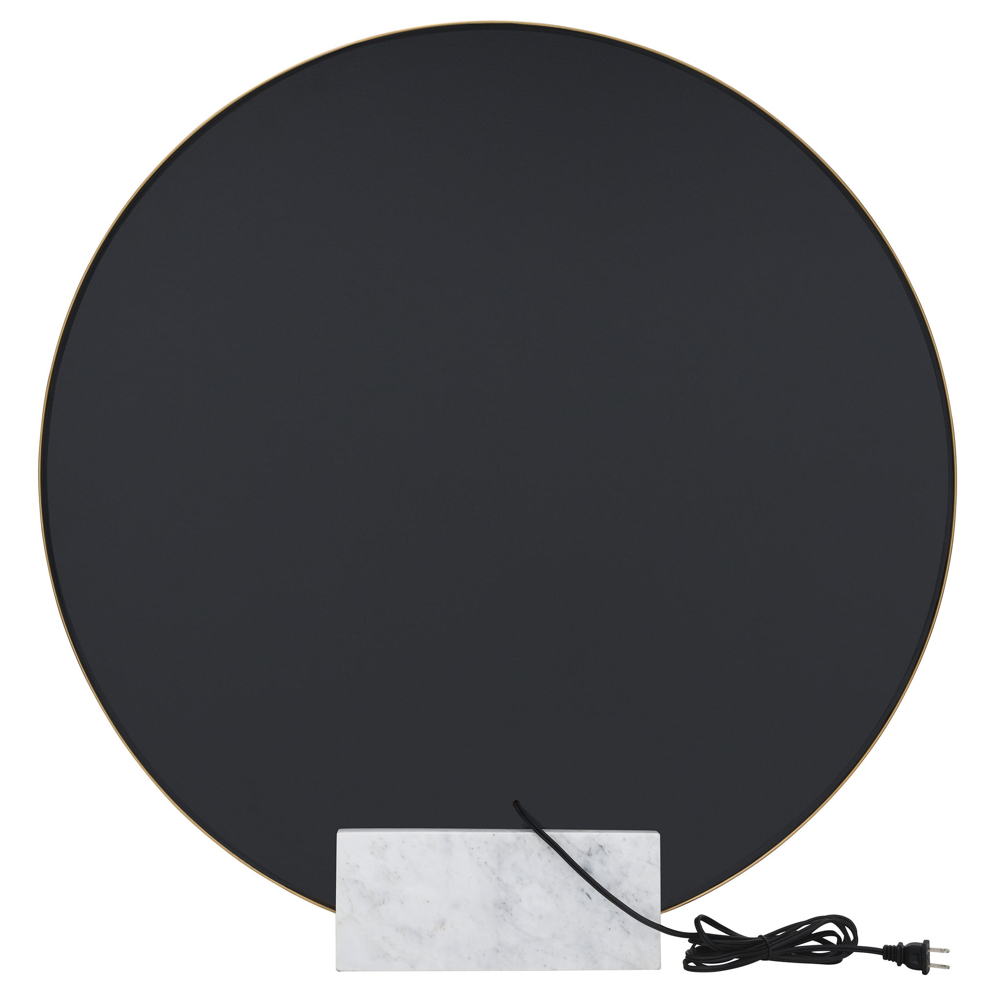 The height of glam takes on an Art Deco feel as your bedroom or dressing space increases in elegance with a chic round lighted table mirror. Choose the functionality and exquisite design of a classic mirror with a popular round silhouette. Exceptional versatility follows a neutral color palette of gleaming metal, mirrored glass, and a base made of chic marble. This mirror illuminates around its edge with an LED strip operating with touch controls. Easy to use and exceptional as a piece of décor, this mirror becomes a go-to choice for your most special spaces.