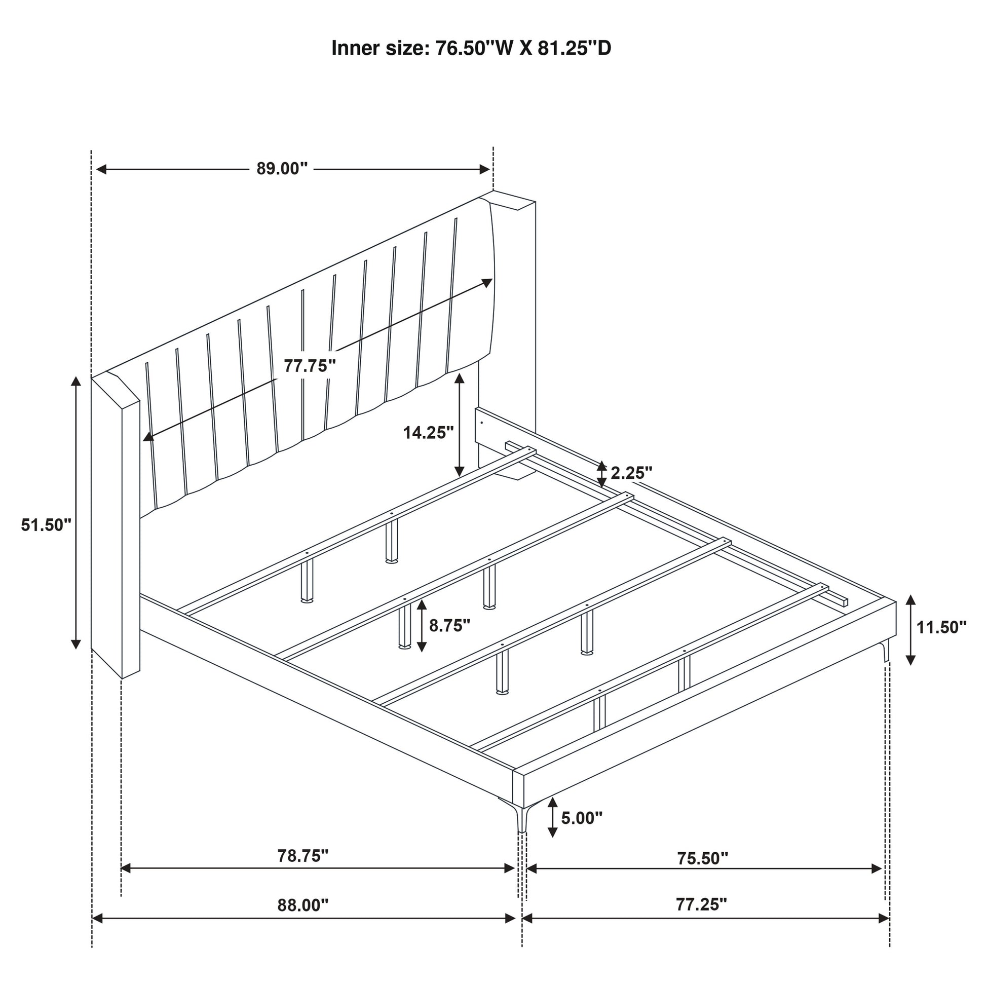 Approximate dimensions: 89.00W X 87.50L X 51.50H