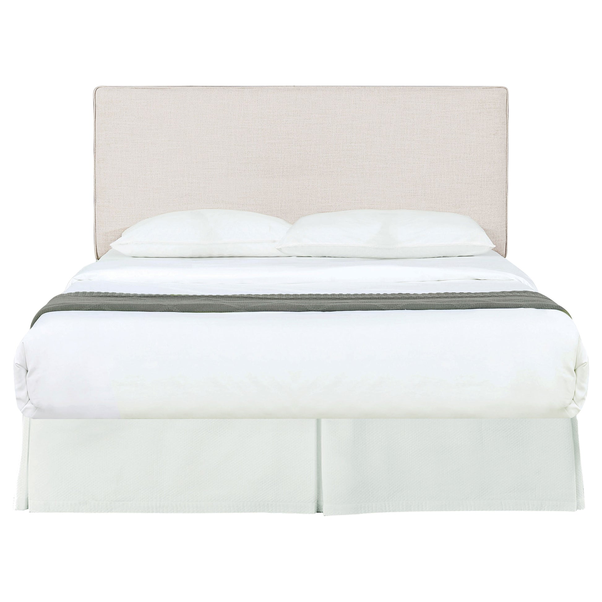 The exemplary and simple style of this classic headboard offers a perfect update to any bed. This upholstered headboard blends clean lines and dimensional upgrades to transform a bedroom into a haven for relaxation. Self-welt construction details add a sleek look to the outer border. Textured sand finish fabric wraps over the headboard, offering a modern look and a light, elegant palette that accommodates a variety of options for matching case pieces, beds, and accessories. Constructed of pine wood.