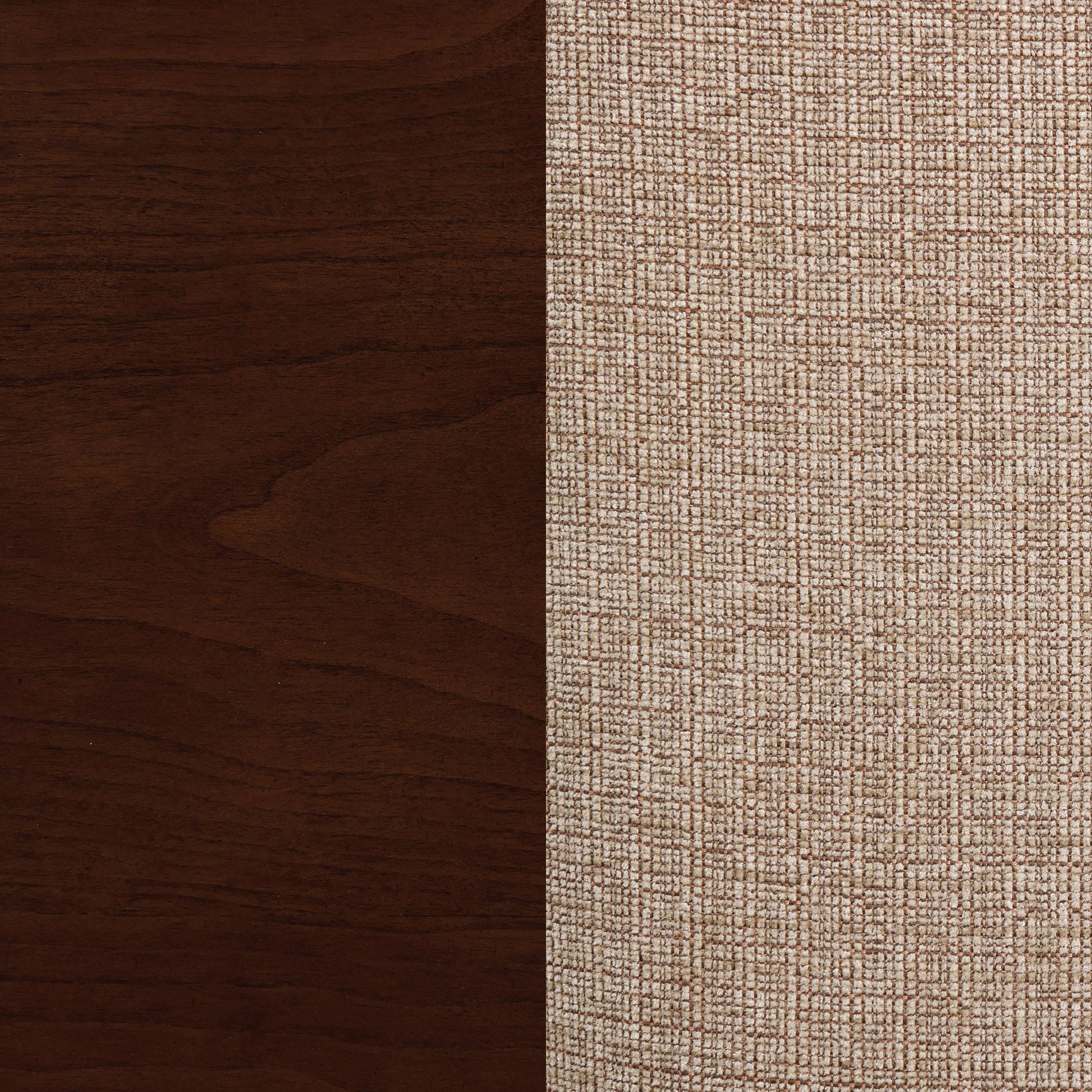 - Lattice back stools have upholstered seat cushions in warm tan fabric