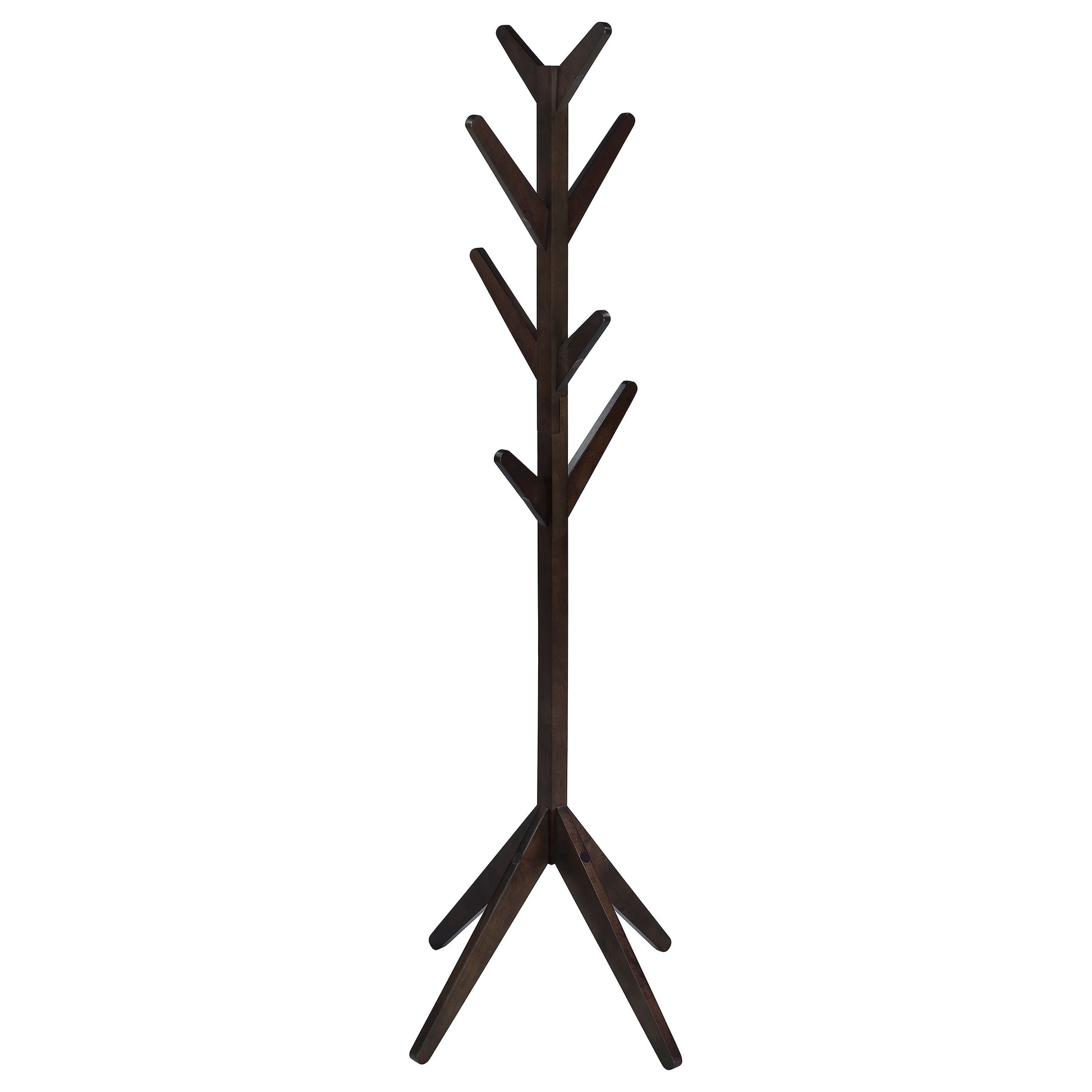 - Solid rubber wood coat rack in cappuccino finish