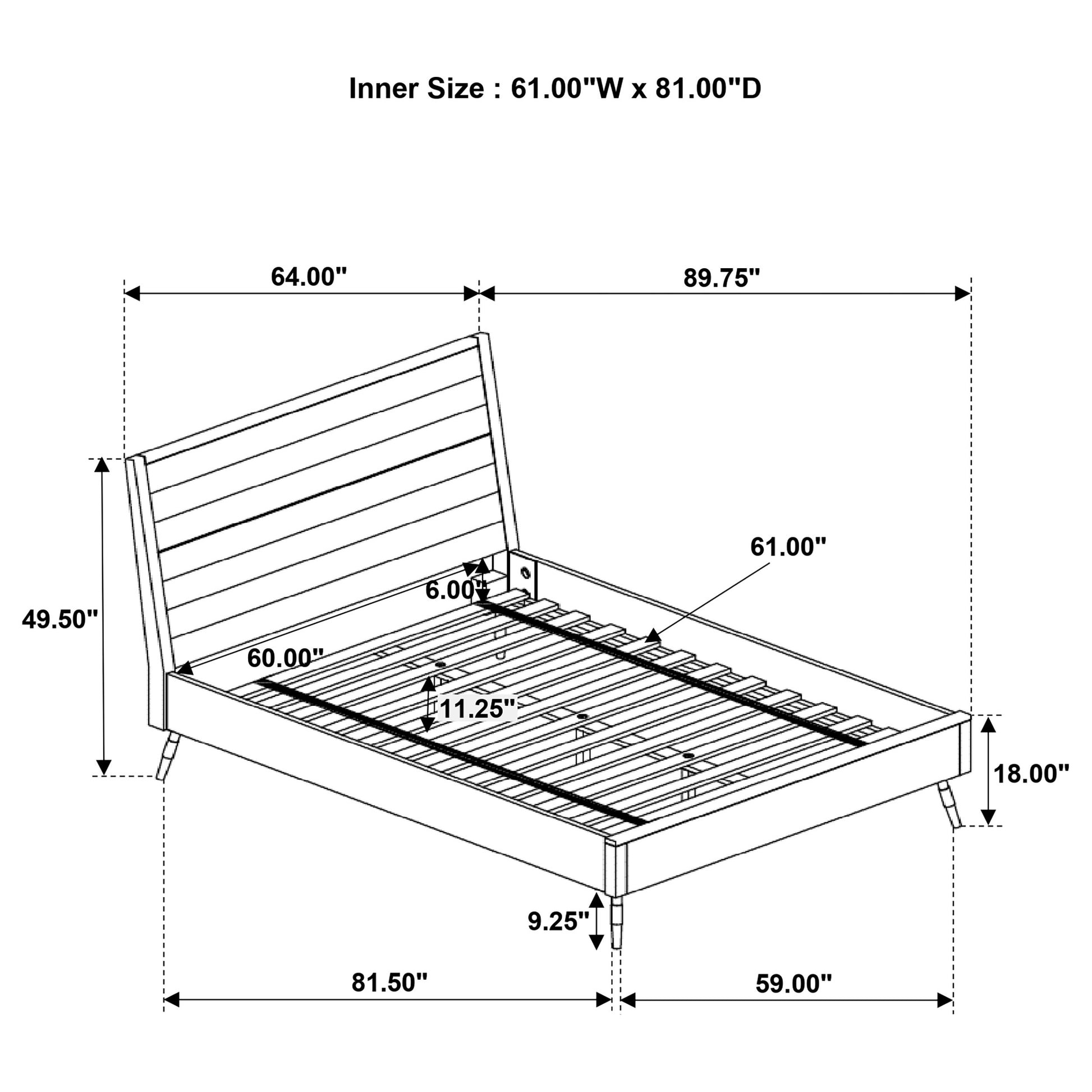 - Platform bed requires no box spring