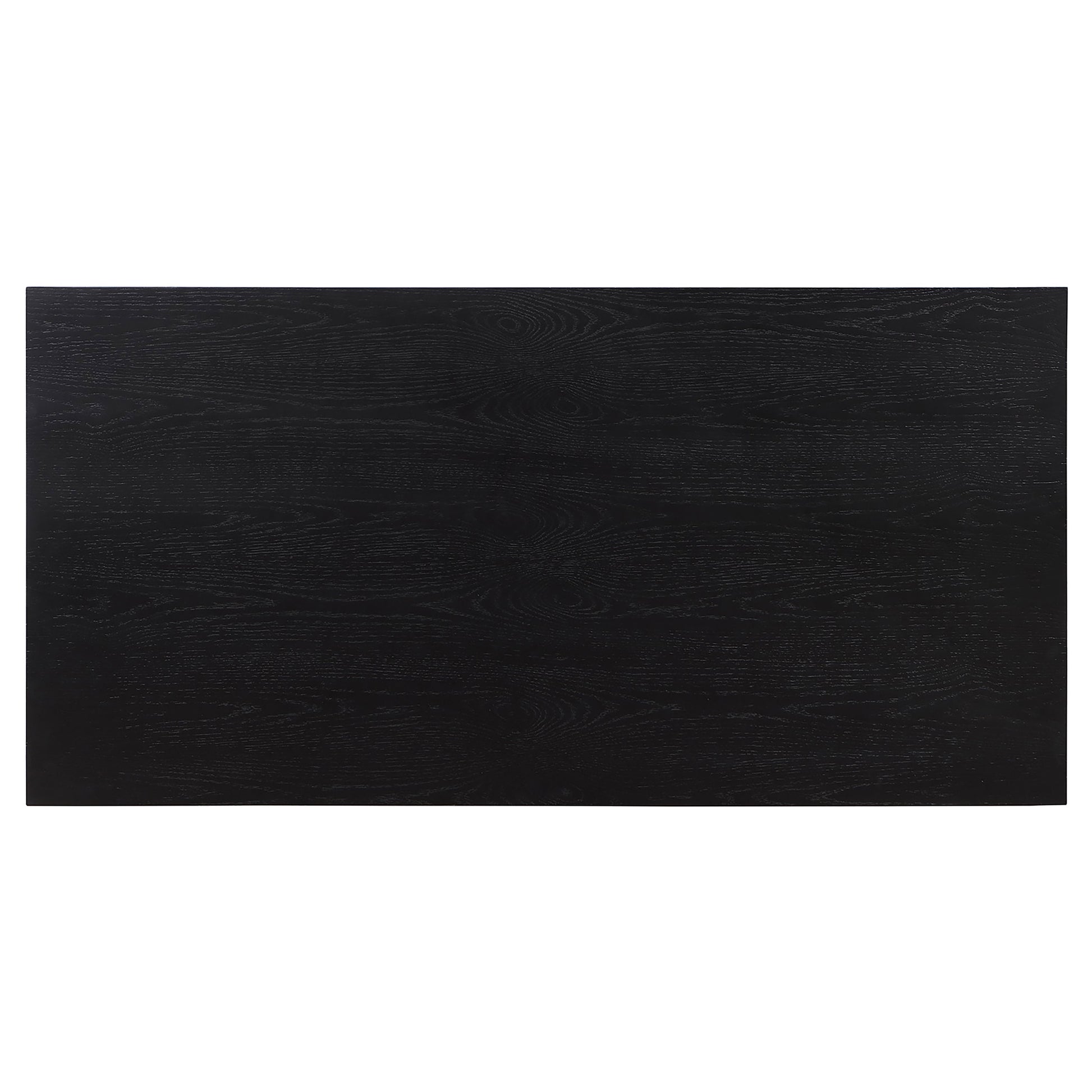 - Crafted from Asian hardwood, the rectangular table comfortably seats four