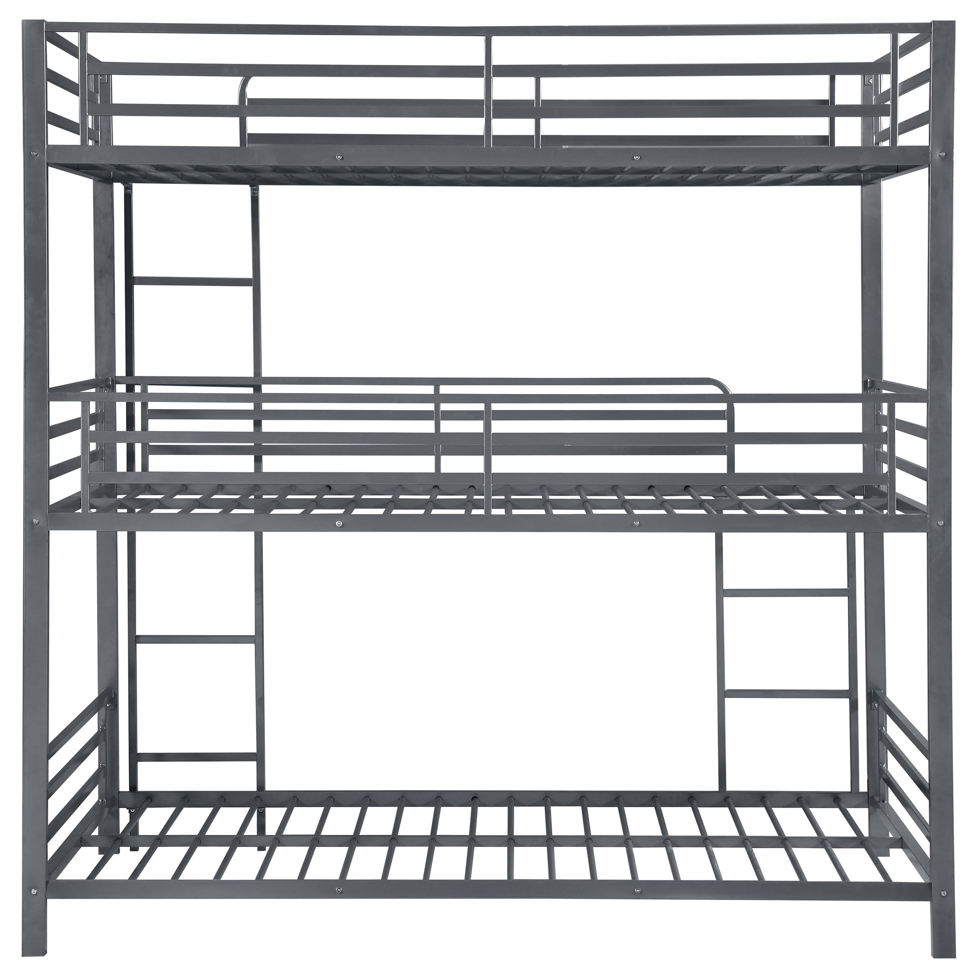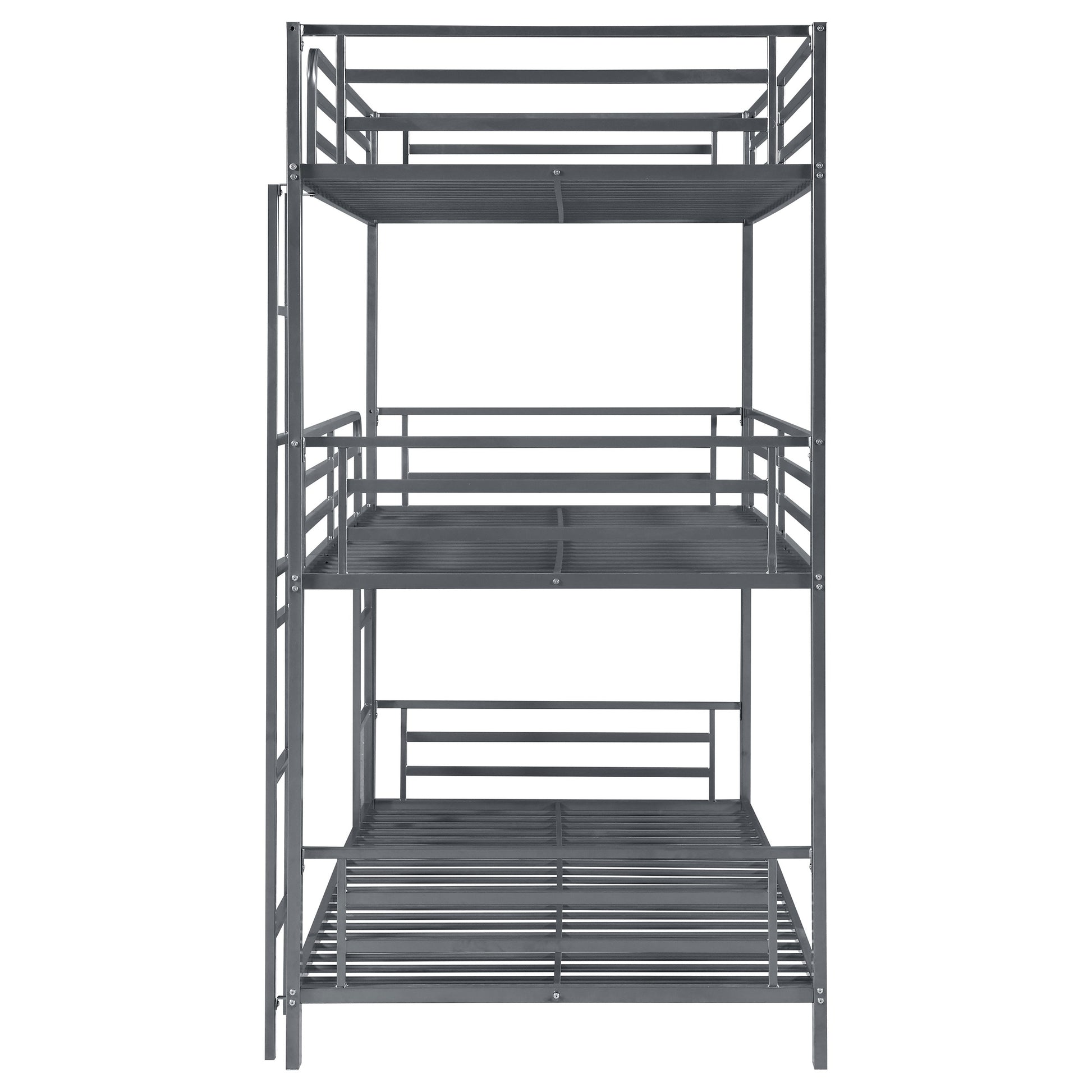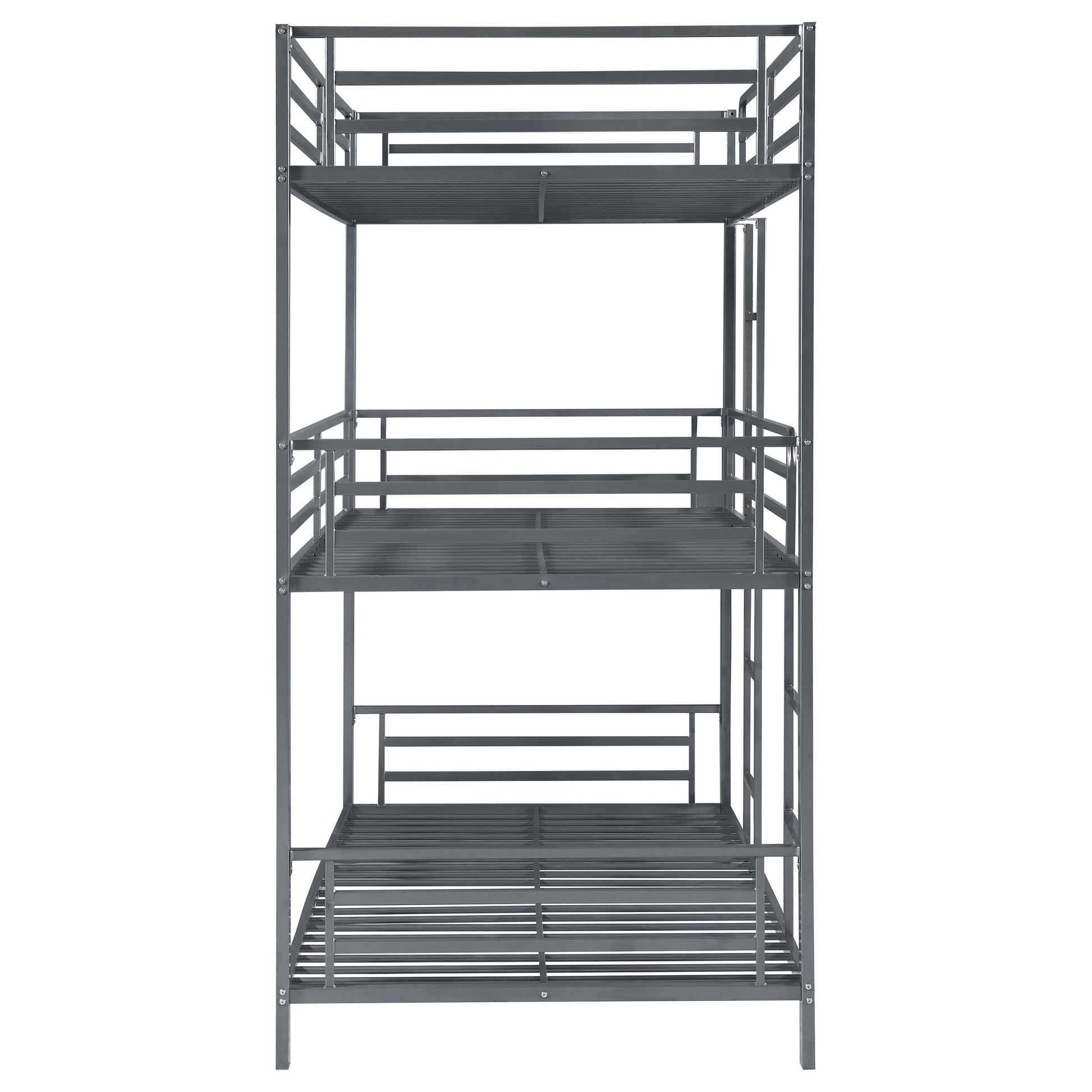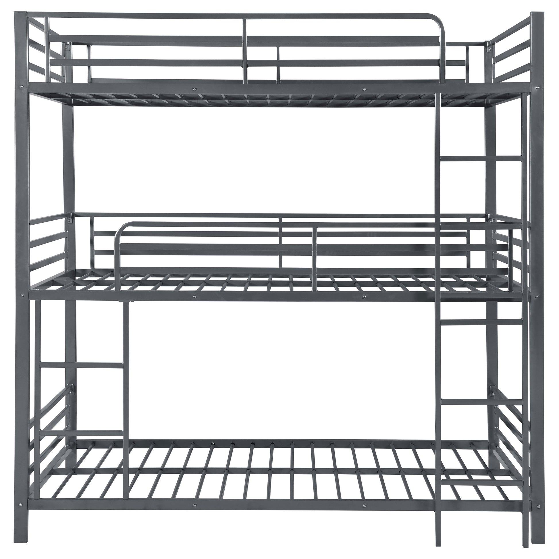 - Heavy duty metal triple bunk bed in a gunmetal powder coated finish combines a modern space-saving design with the unbridled strength of steel