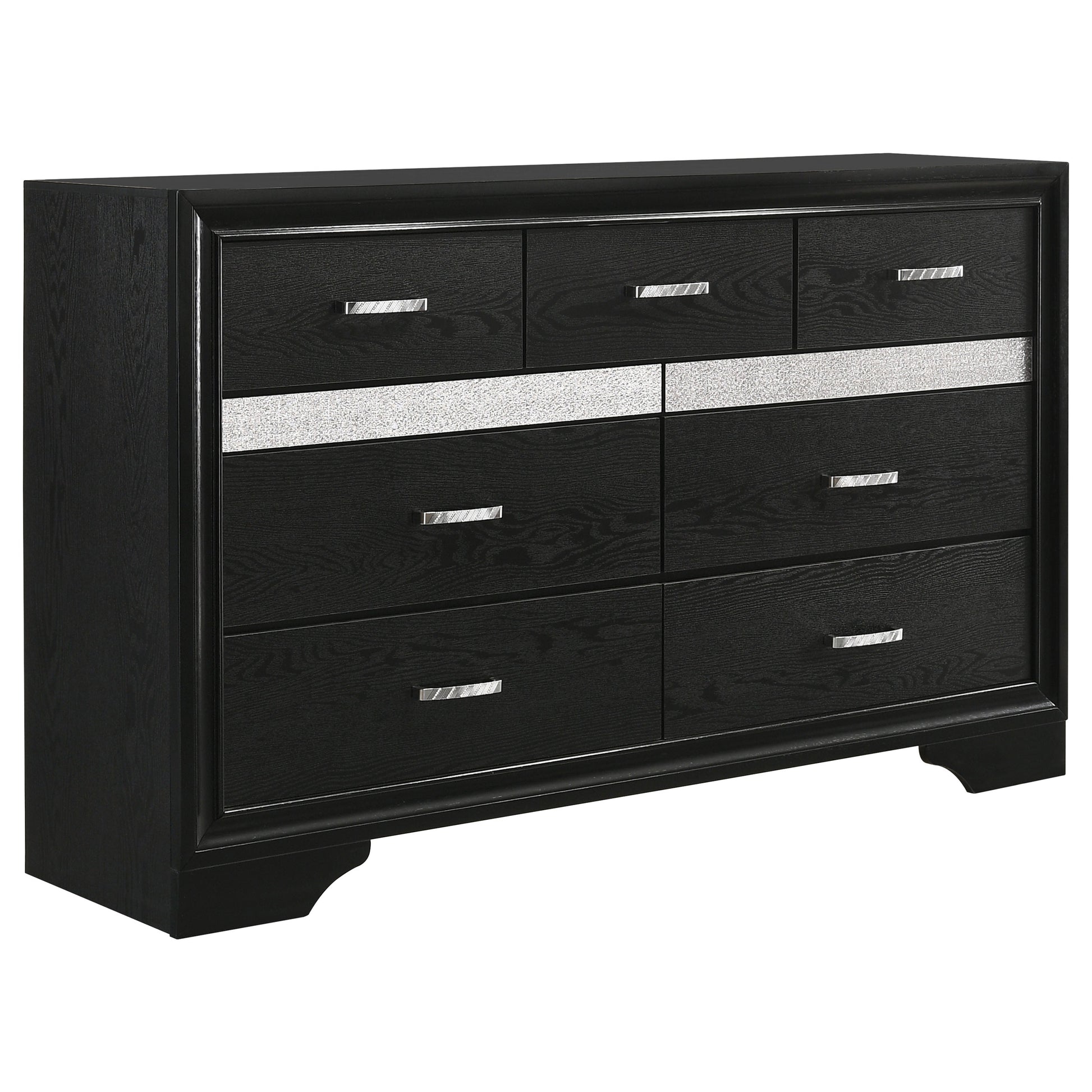 Stylish and ultra-chic, this glamorous, five-piece bedroom set is the ultimate in modern luxury. A bed, nightstand, dresser, mirror, and chest are all included, giving you everything you need to complete your bedroom ensemble. The mattress-ready platform bed offers the added bonus of footboard storage. The dresser, nightstand, and chest are also equipped with roomy drawers to maximize storage space. Glittery stripes and rhinestone detailing add a brilliant touch of bling to this exquisite bedroom set.
