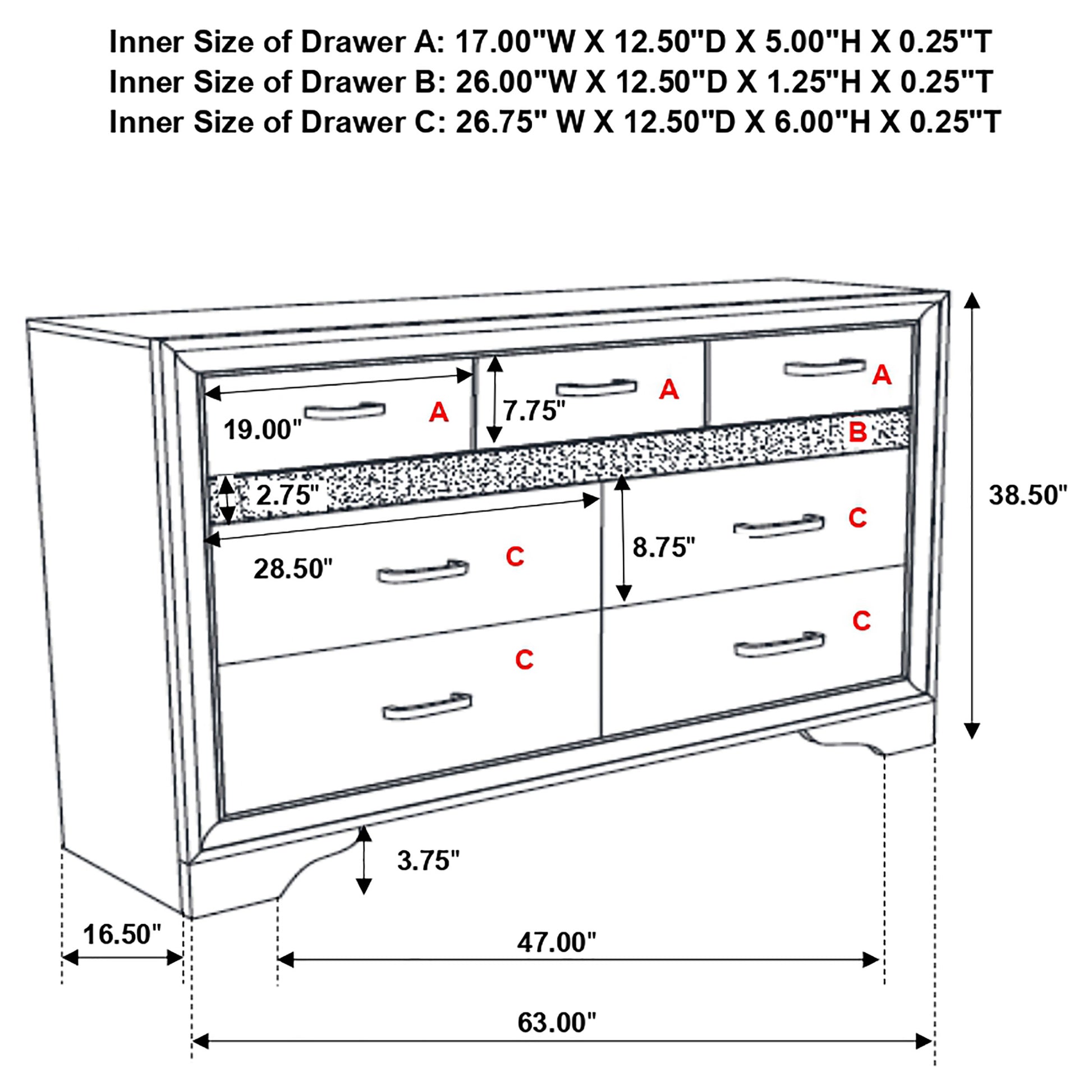 - Chest and dresser have hidden felt-lined drawers to protect your jewelry