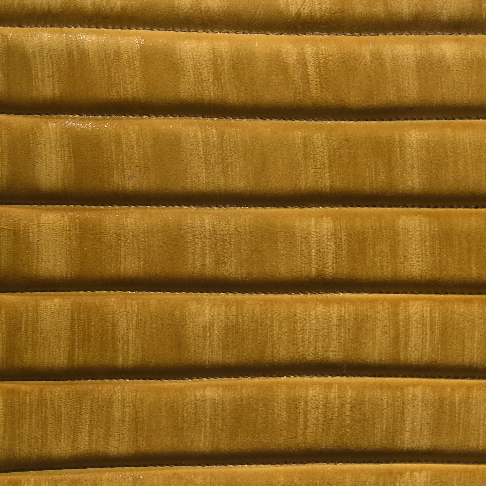 - Chairs are crafted with hand dyed goat leather and metal. These are offered in camel as well as espresso leather colors.