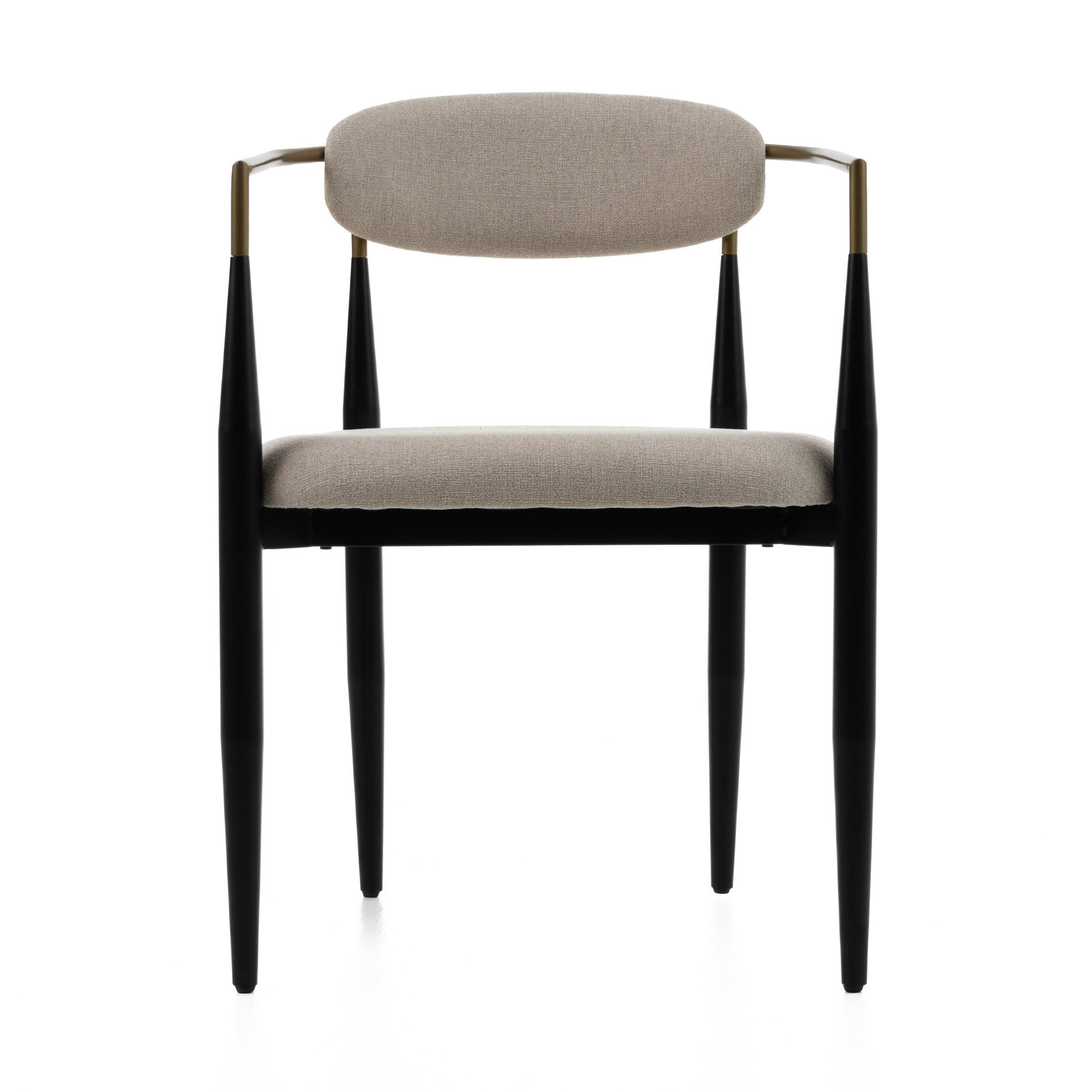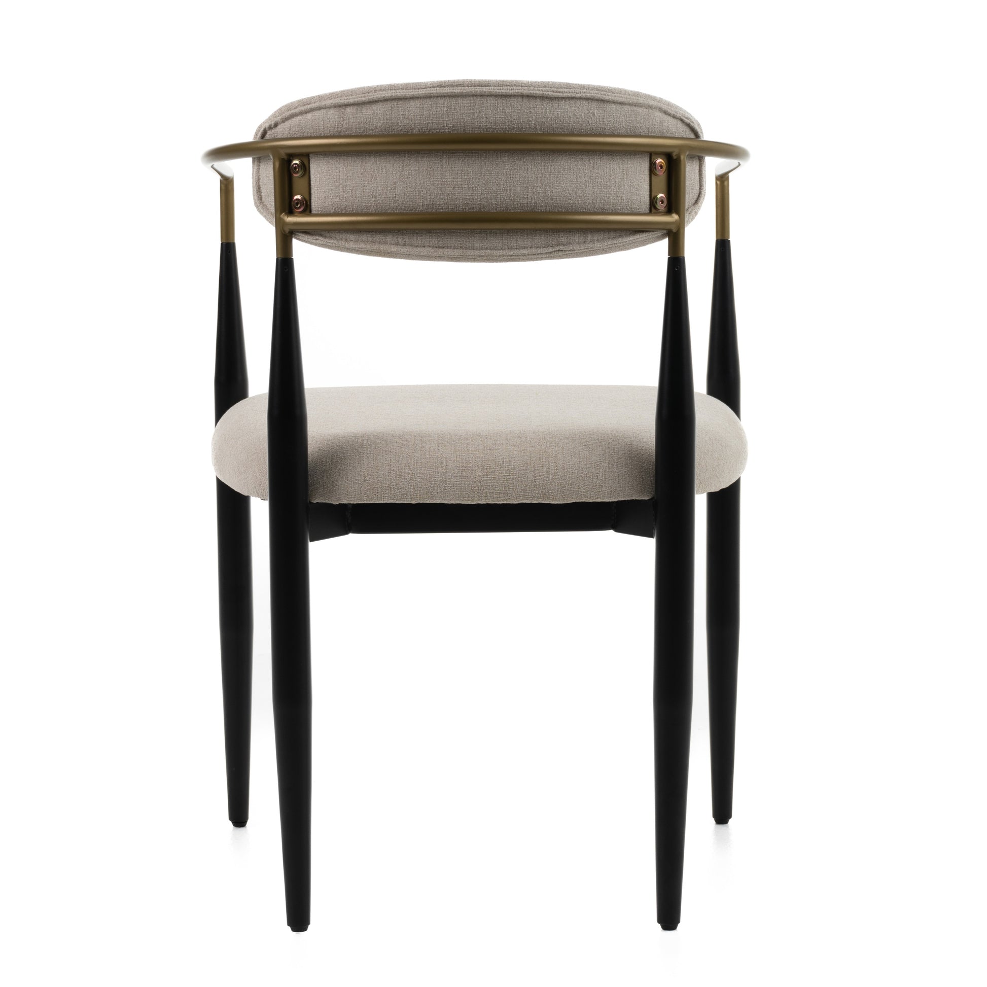 The Modrest Buchtel Dining Chair brings a touch of timeless mid-century modern elegance to any dining space. Wrapped in soft beige fabric, this chair is complemented by sleek black legs and refined gold accents on the armrests, creating a striking contrast that’s both sophisticated and inviting. Its gently curved back and plush seating offer exceptional comfort, while the minimalistic design captures a sense of effortless style. A perfect blend of form and function, the Buchtel Dining Chair embodies a chic, understated luxury that will elevate the ambiance of any modern home.