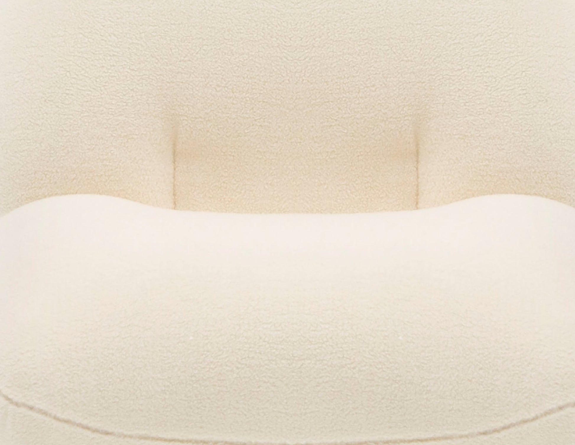 The Crestone Accent Chair is the perfect chair for a modern reading nook or contemporary living area. The deep seat is upholstered in a luxurious sherpa material. The glam style is highlighted by the circular gold base and shell silhouette.