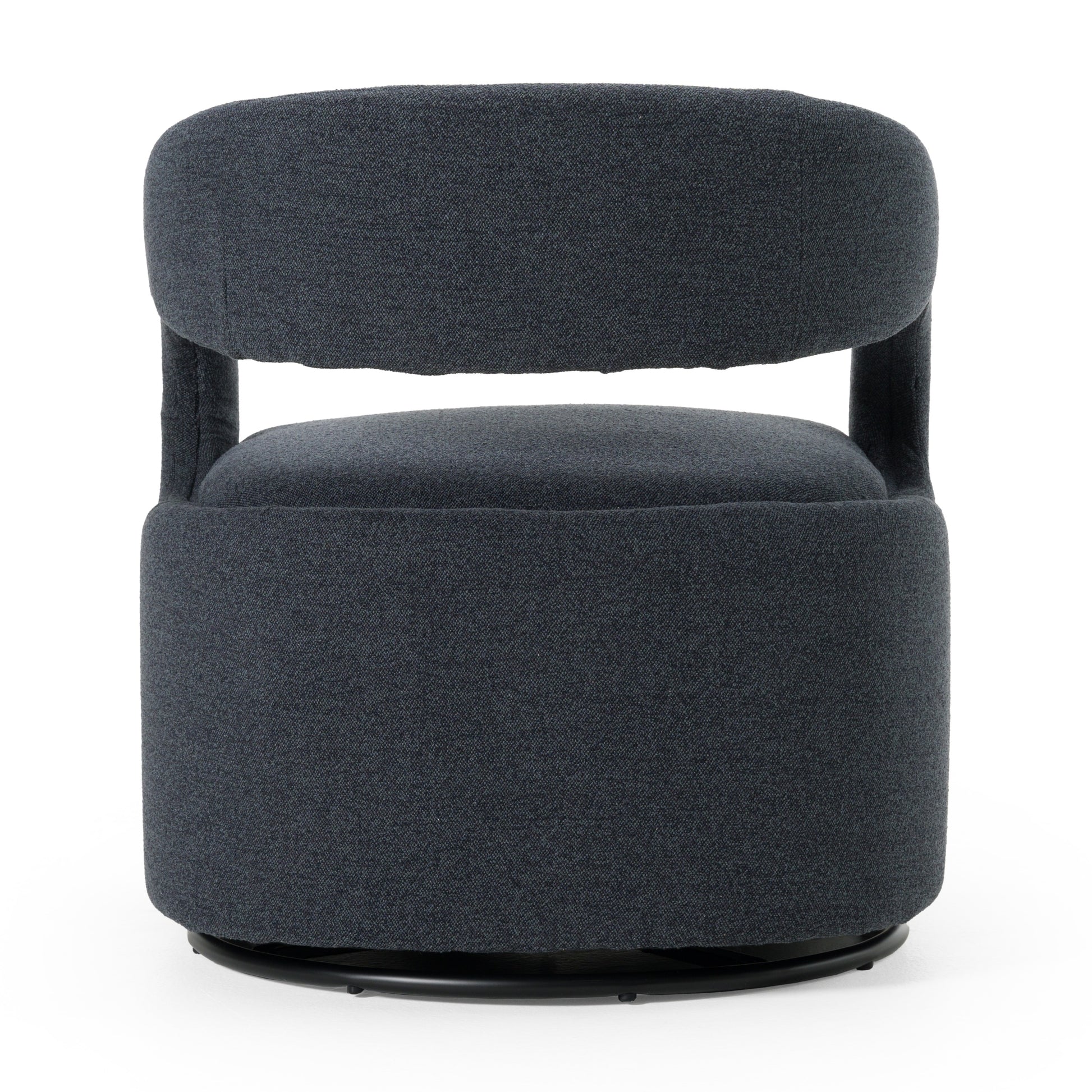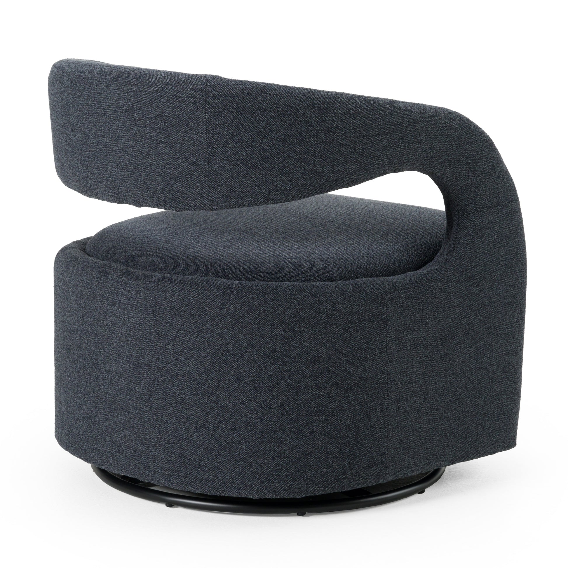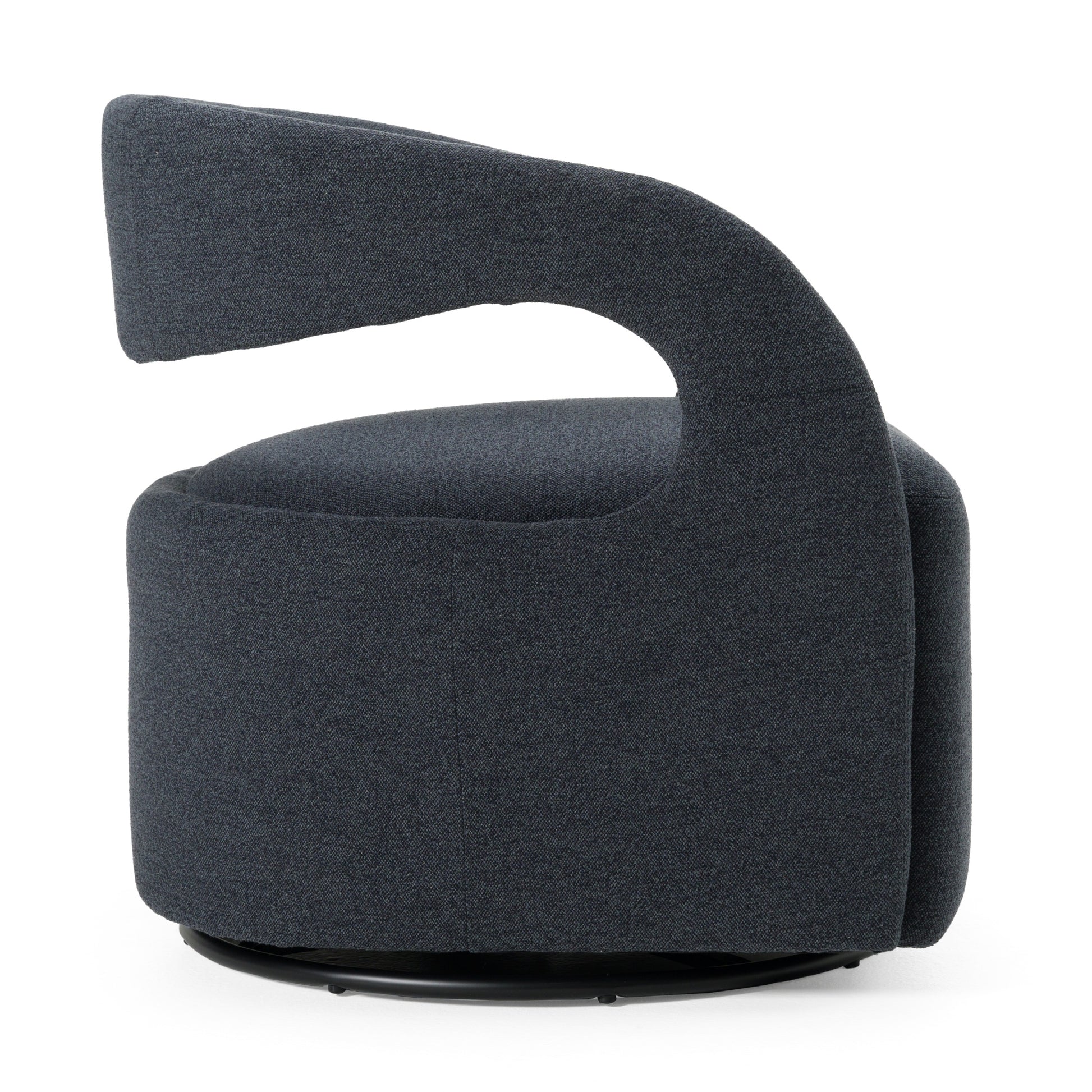 The Modrest Dowsett - Modern Black Fabric Swivel Accent Chair is a stylish and functional piece perfect for modern interiors. This accent chair features a swivel base, allowing for easy movement and versatility in any room. Upholstered in 100% polyester fabric, the chair comes in a sleek black color, complemented by a sturdy frame made of metal and manufactured wood. The chair is designed with flared arms and a split back, offering both comfort and aesthetic appeal, and it comes fully assembled, ready to enhance your living space.