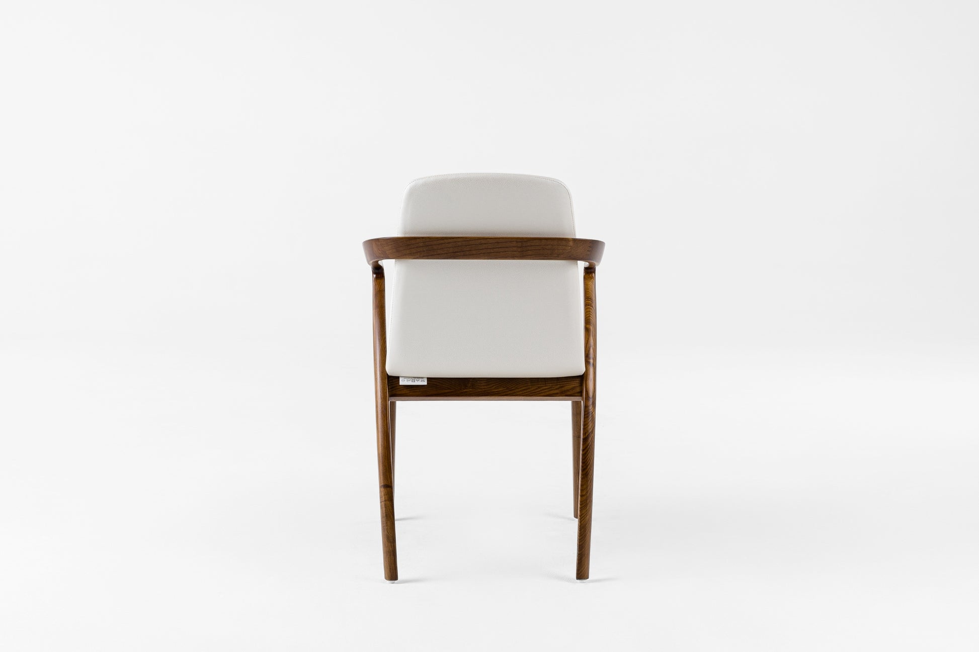 The Modrest Falcon Modern Walnut and Cream Dining Chair features an extraordinary Mid-Century design. The curved back legs form part of the armrests and back support to create a seamless silhouette while the leatherette upholstery adds texture and contemporary style. It has a sleek walnut finished ash wood frame that adds a modern naturalism.