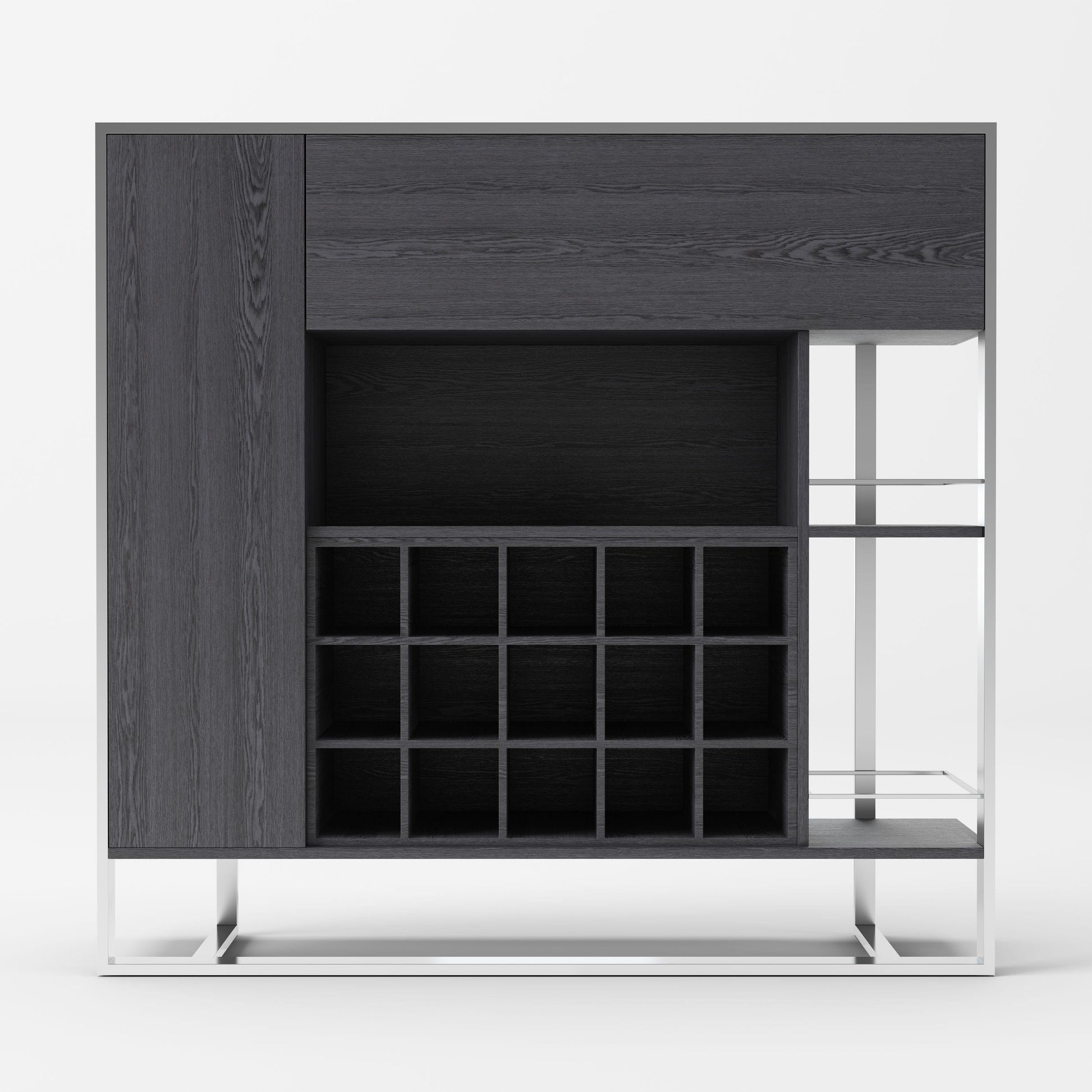 The Fauna Wine Cabinet is set apart by its expert styling. The elm grey finish of the cabinet is partnered by the stainless-steel lines of the frame and base. With a 15-wine bottle capacity, this cabinet is sure to light up your space.