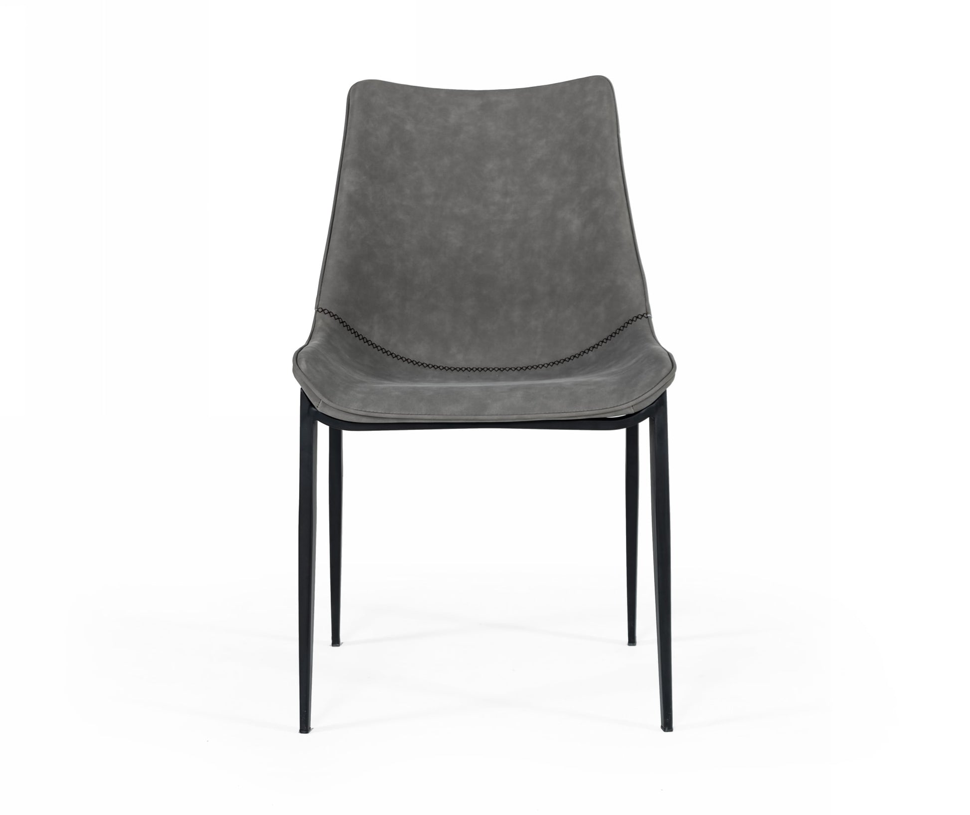 The Fraiser Dining Chair has a classic mid-century silhoutte while the materials are reminiscent of an industrial scheme. The smooth eco-leather upholstery has a varied pattern that creates a sense of texture. The thick stitch detail draws the eye while the metal frame creates stability for the user.