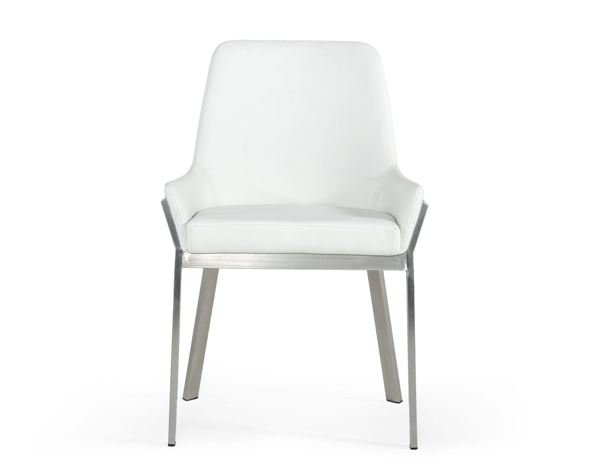 The Ganon Dining Chair is the perfect staple for your dining room. Upholstered in a lovely vegan leather, this classic chair is a contemporary marvel. The Stainless-steel legs wrap around the upholstery to create a modern look.