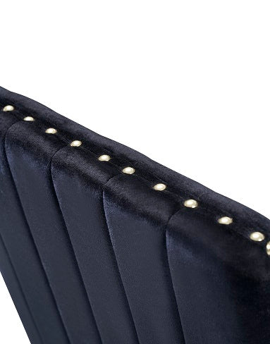 Keisha is glamorous Black Vevet and Gold Chair with studded detail. Will look perfect with our Natural Marble and Gold dining tables.