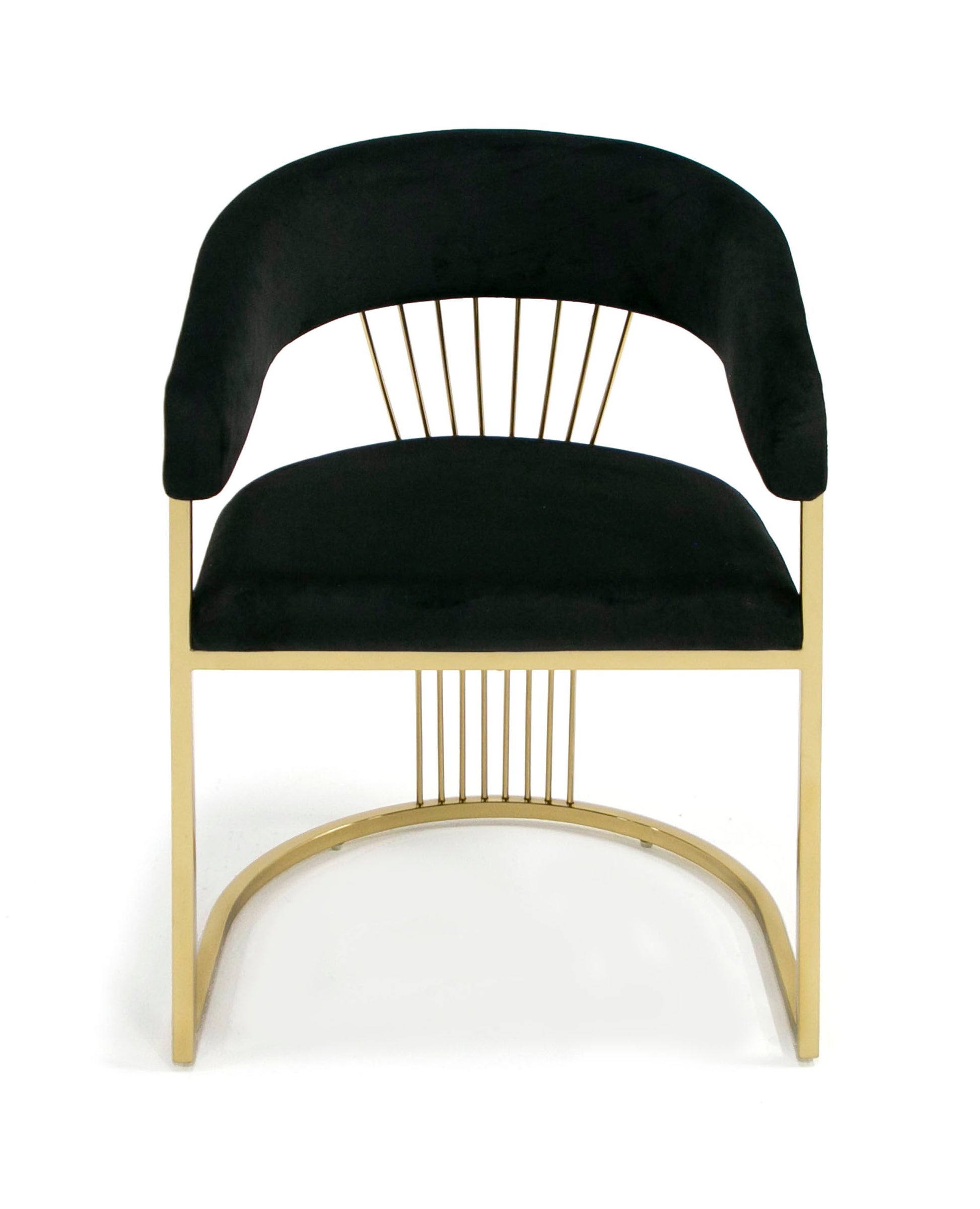 Linda is a comfortable and elegant looking Modern chair upholstered in black velvet with gold detailed frame.